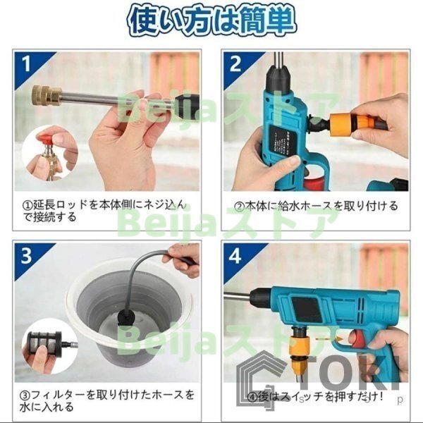 高圧洗浄機 コードレス 充電式 マキタ 18Vバッテリー互換対応 軽量 吐出圧力2.4MPa 強力噴射 大掃除 ハンディウォッシャー 1.5バッテリー*1