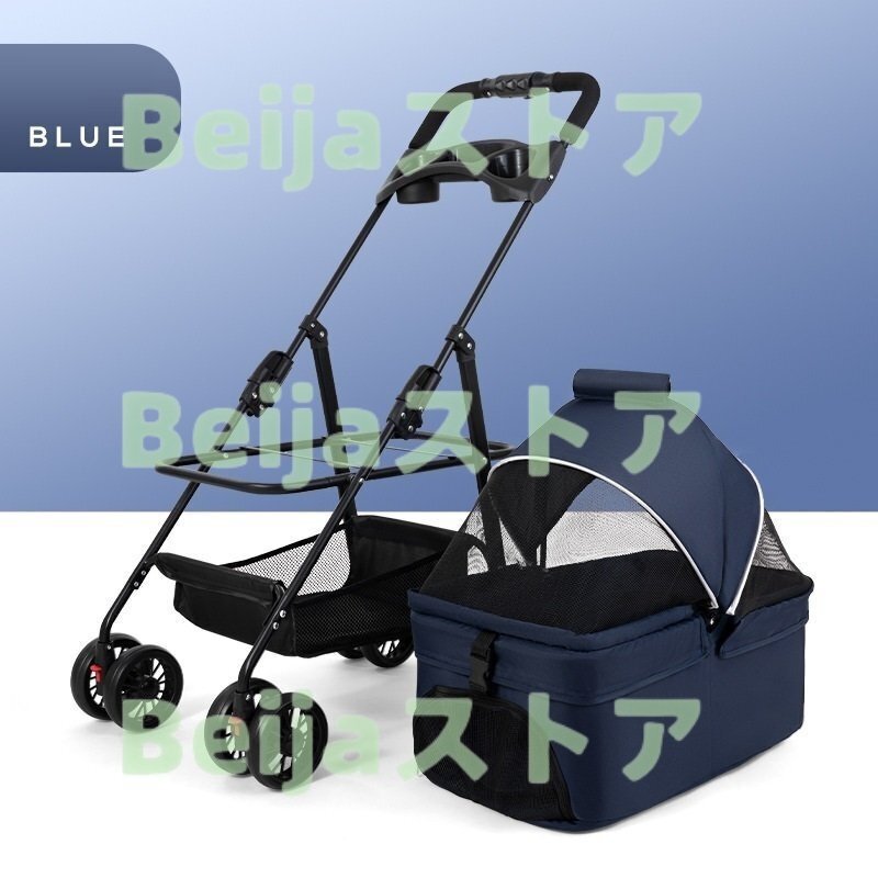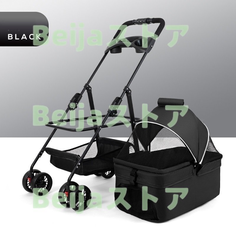 ペットカート分離式 折り畳み 4輪 ピンク ストッパー付き 小物入れ 手洗い 軽量 お出かけ 散歩 グレー