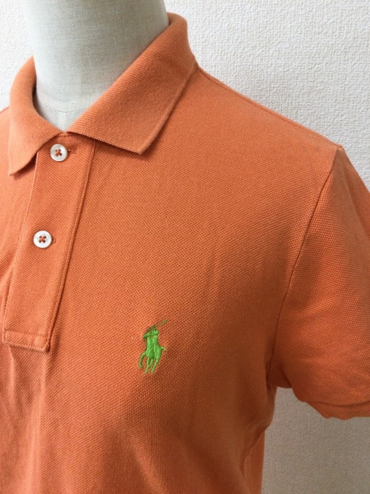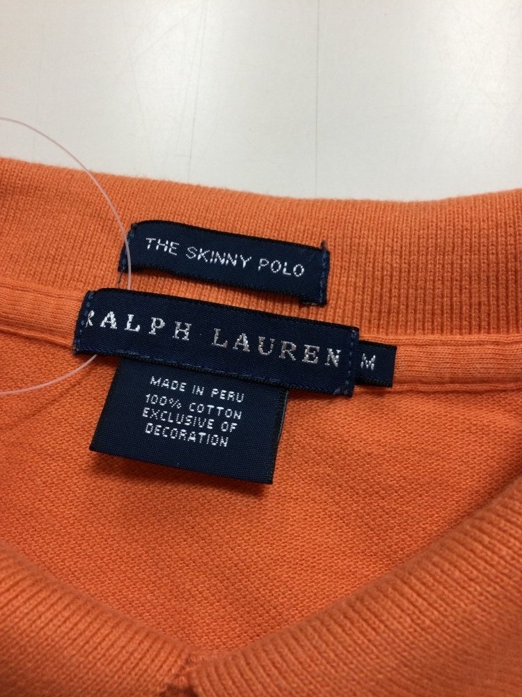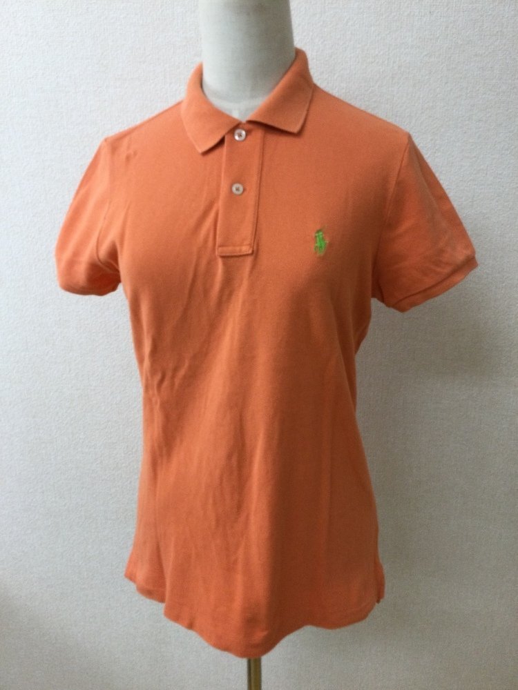 | 管理番号:10^133594 ラルフローレン オレンジ色ポロシャツ スキニーポロ 表示サイズ:M 実寸(参考)
