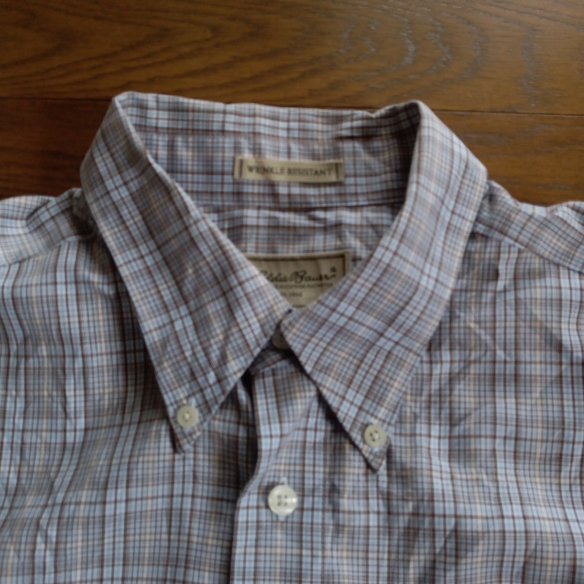 商品説明「Eddie Bauer エディバウアー 長袖ボタンダウンシャツ メンズL 水色/茶色/チェック柄」になります。