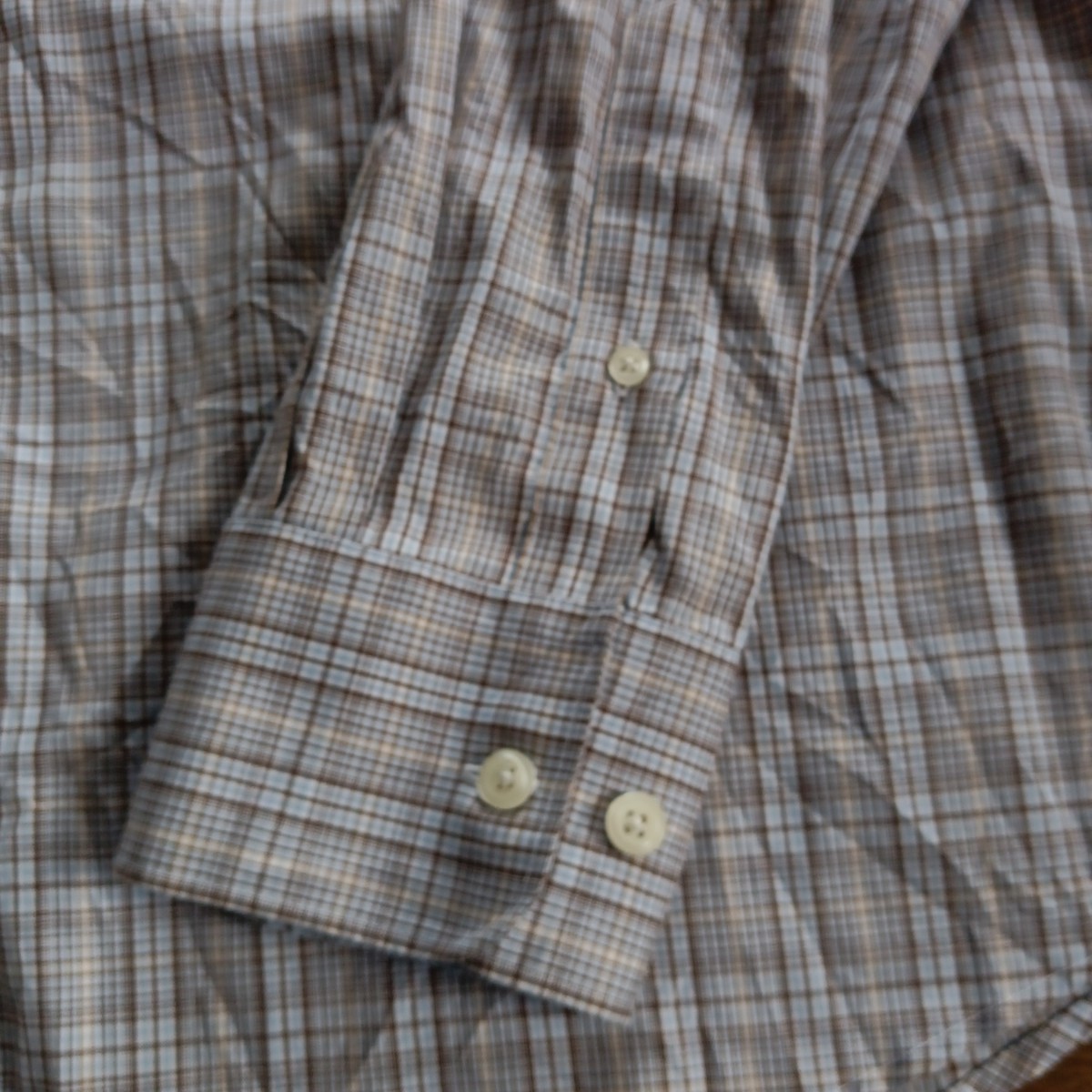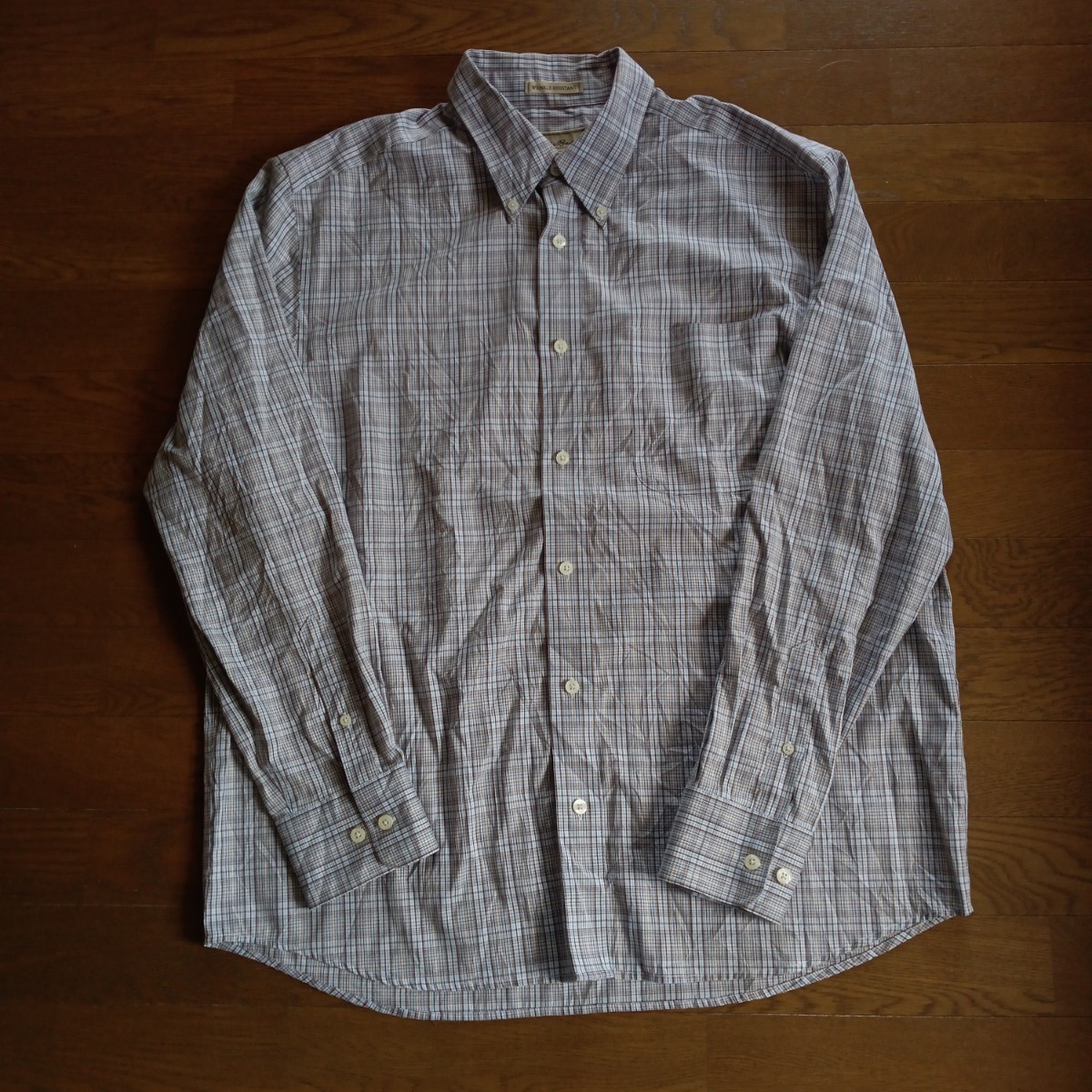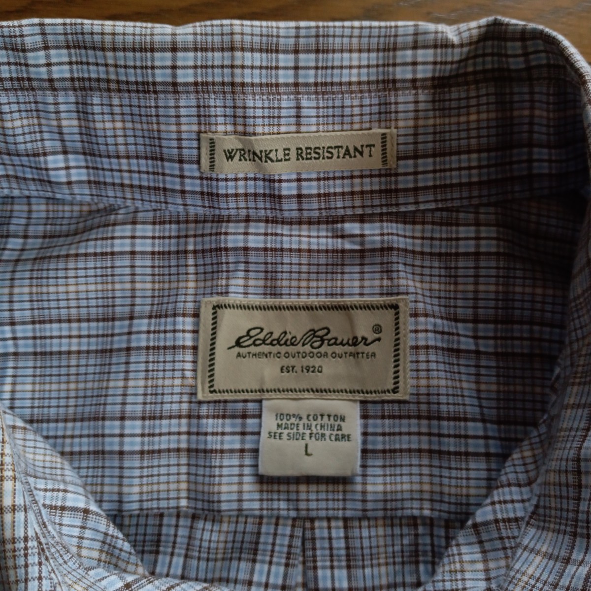 037 【即決・送料無料】Eddie Bauer エディバウアー 長袖ボタンダウンシャツ メンズL 水色/茶色/チェック柄