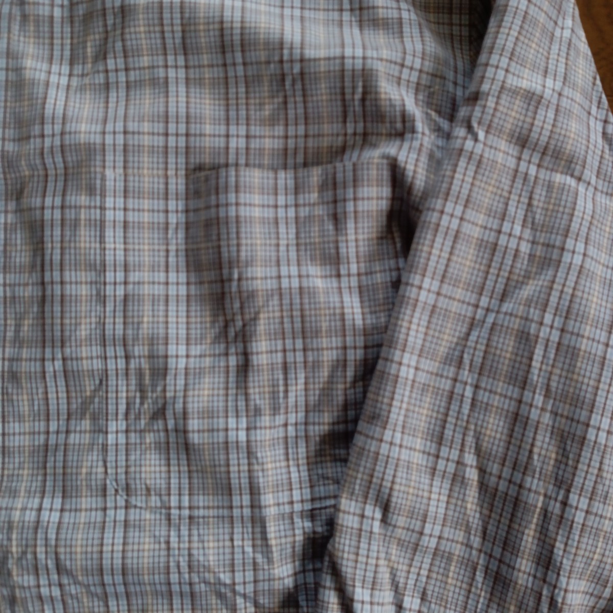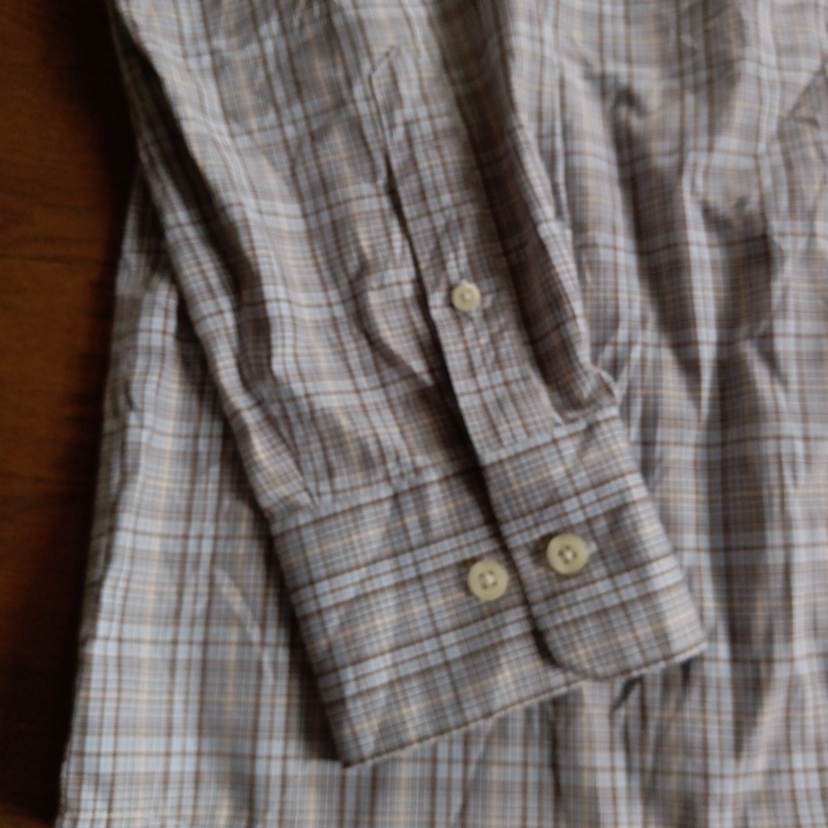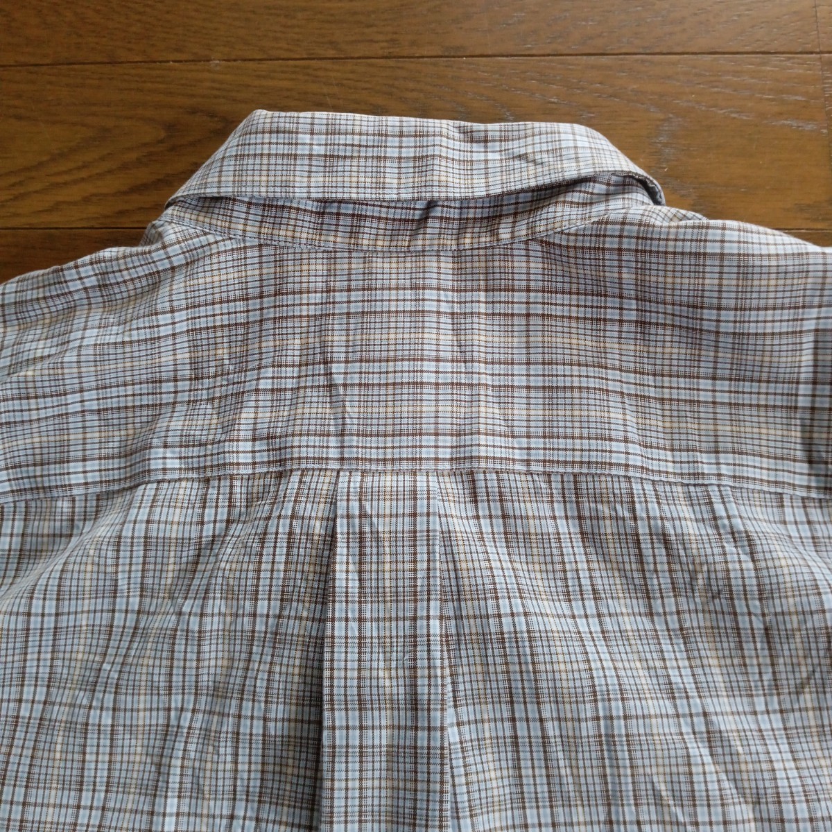 037 【即決・送料無料】Eddie Bauer エディバウアー 長袖ボタンダウンシャツ メンズL 水色/茶色/チェック柄
