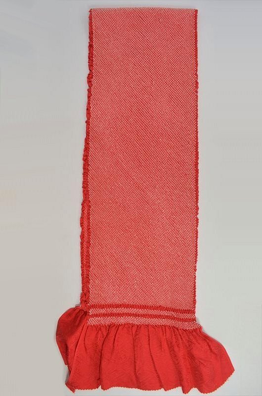 深緋系の総絞りの帯揚げです。