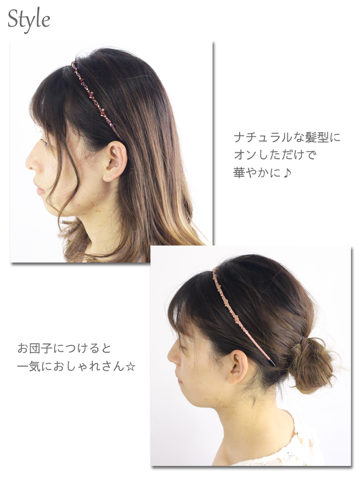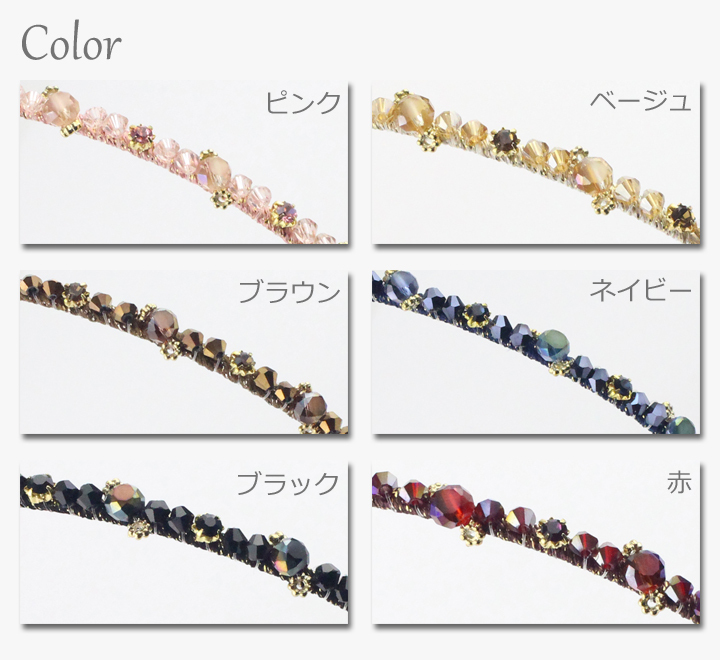 商品説明 | 同系色の様々なカットが施されたビーズがたっぷりのカチューシャ。 カチューシャとしてデイリーアクセとして使ったり、 パーティーなどのアレンジヘアにONしたりと、幅広く使えるデザインです。 |