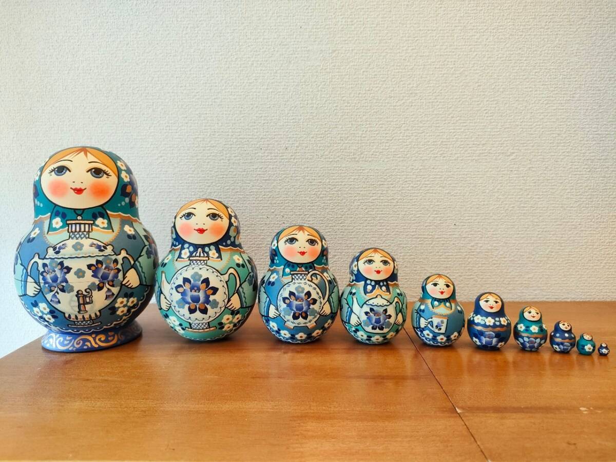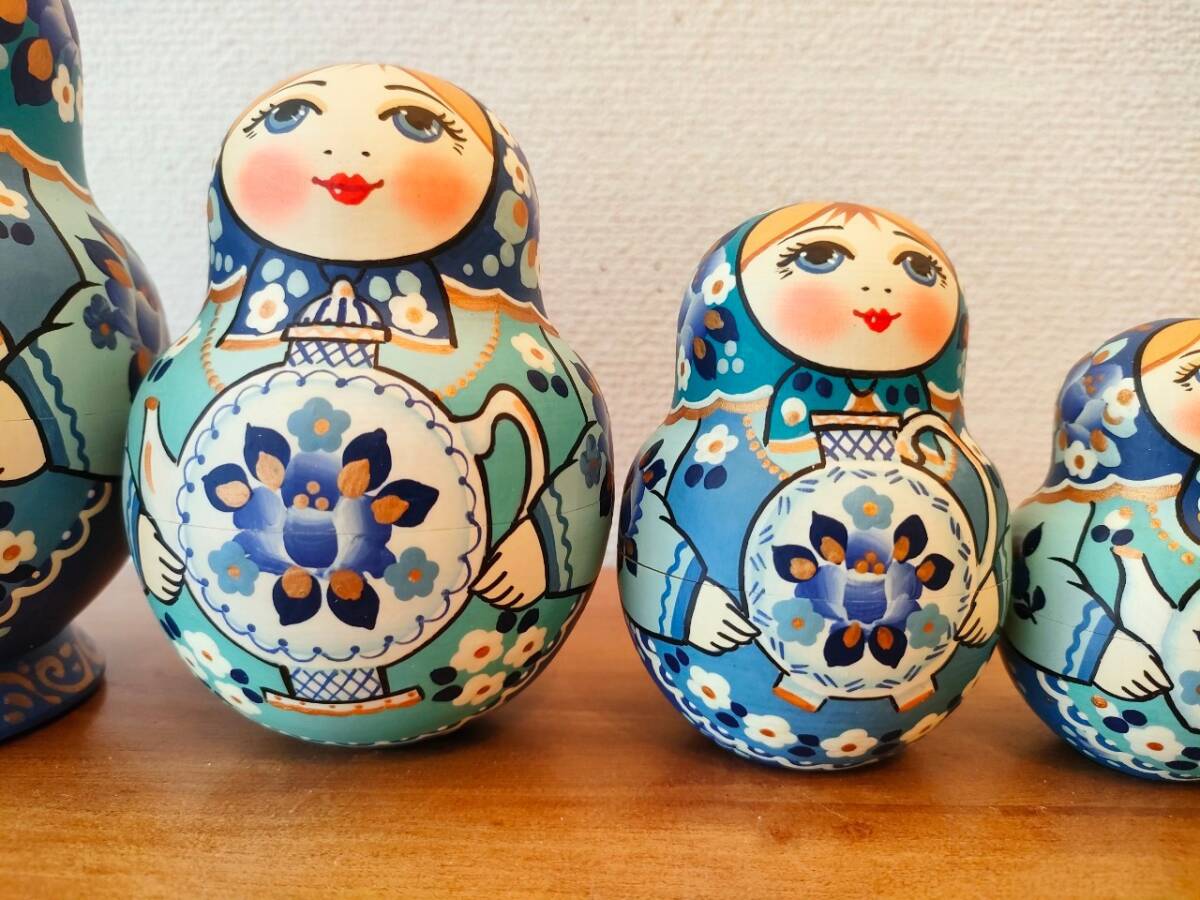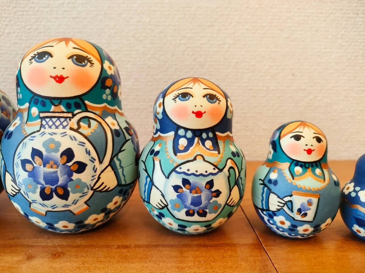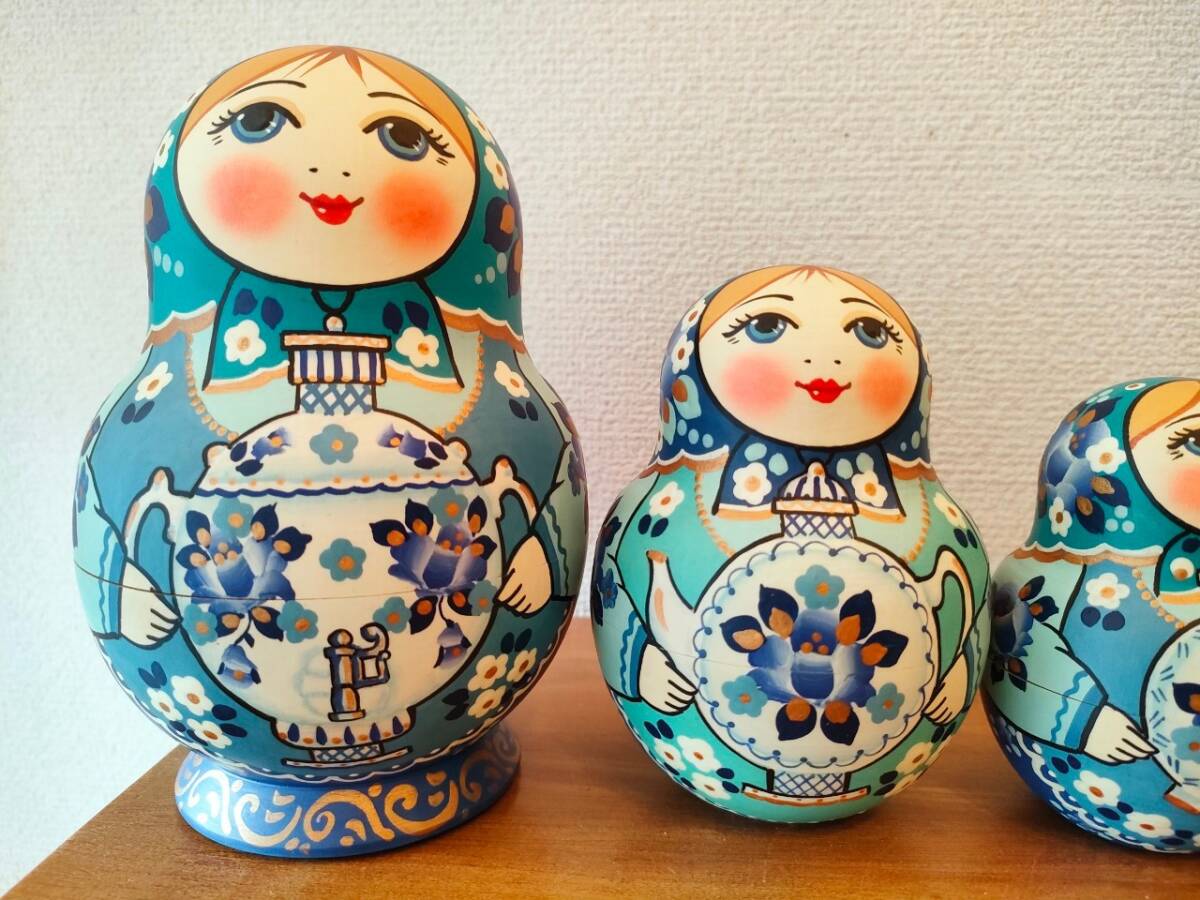 【LYH259】北欧ロシア雑貨 リューバ作のマトリョーシカ グジェリ焼きとサモワール