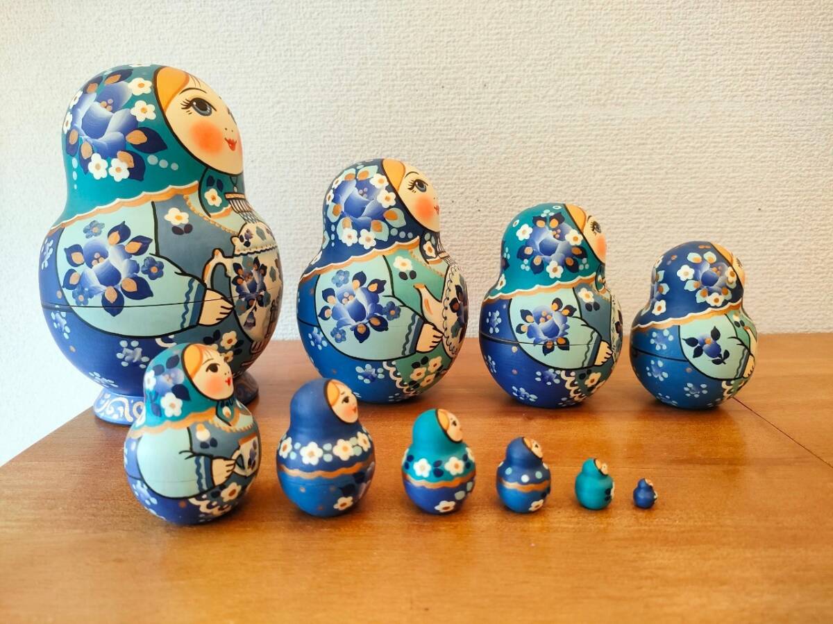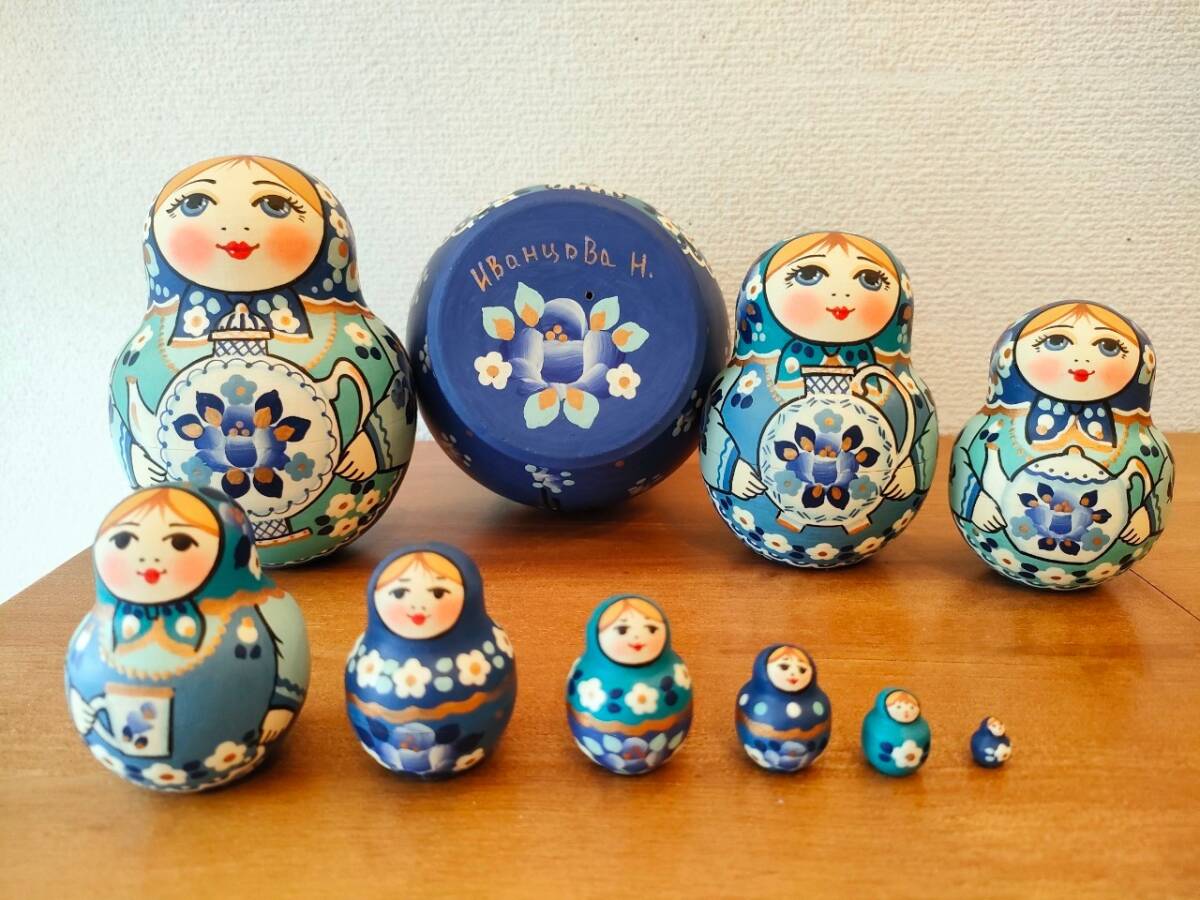 リュボーフィさんの母親のナジェージダ・イワンツォワさんは人生のすべてをマトリョーシカに捧げている大作家さんです。マトリョーシカの描画技術の伝道のため19歳で南米に渡り、その後は世界中の美術館やコレクション博物館などで彼女の作品は展示され始め、認知されました。ロシア・マトリョーシカ誕生の初期の頃の伝統的なデザインを守るスタイルで、この才能と技術は娘のリュボーフィ・ブズィキナさんに継承され、世界中で人気を博しています。贋作も多く、注意が呼びかけられています。