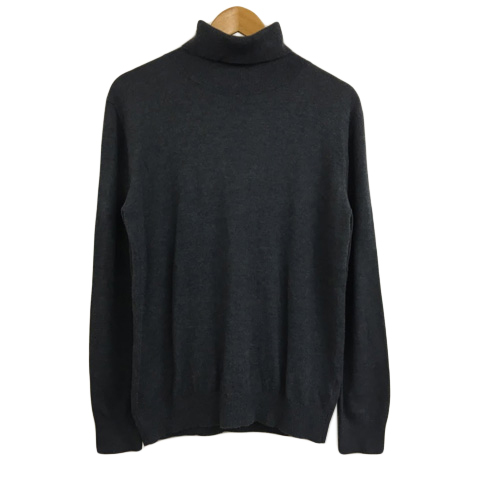 ネイビー Navy セーター ニット プルオーバー タートルネック カシミヤ混 無地 長袖 L グレー メンズ