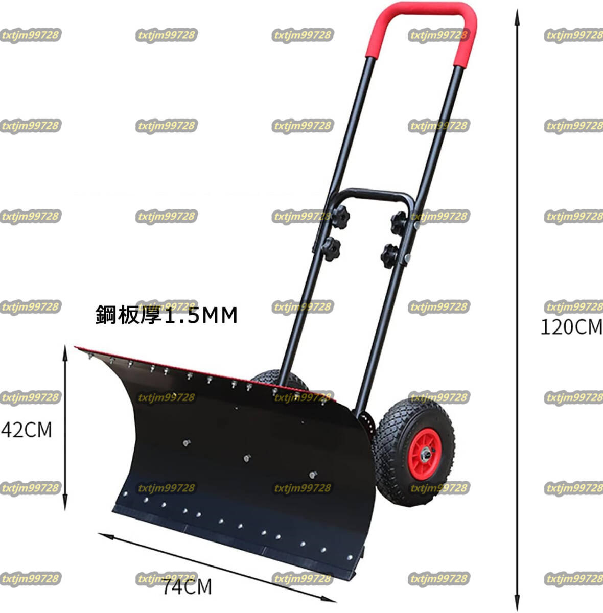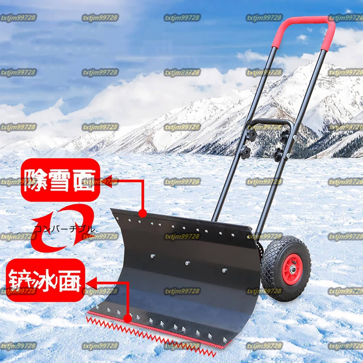除雪機 雪かき 家庭用 スノープッシャー タイヤ付き 高さ 左右角度調整 雪かき機2つの機能 雪と氷のかき分け 除雪スコップ 手押し 74CM