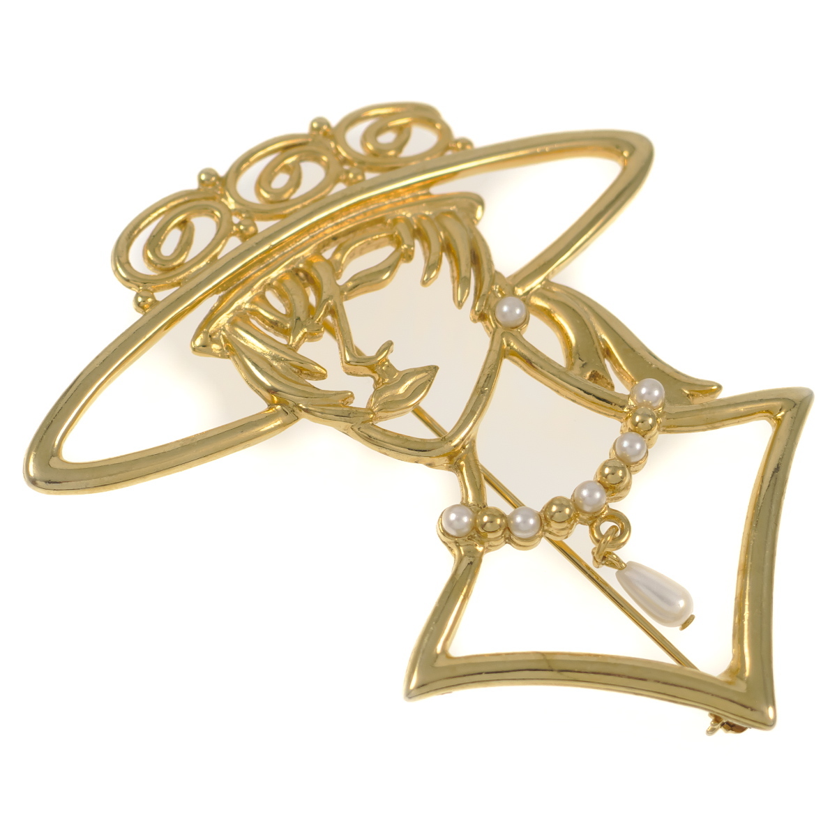 A10289◆【JJ】◆ 大ぶり 女性モチーフ オープンデザイン ◆ ヴィンテージブローチ ◆