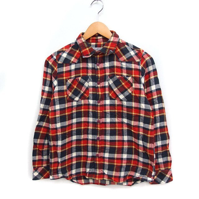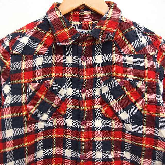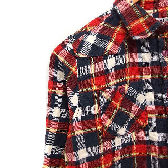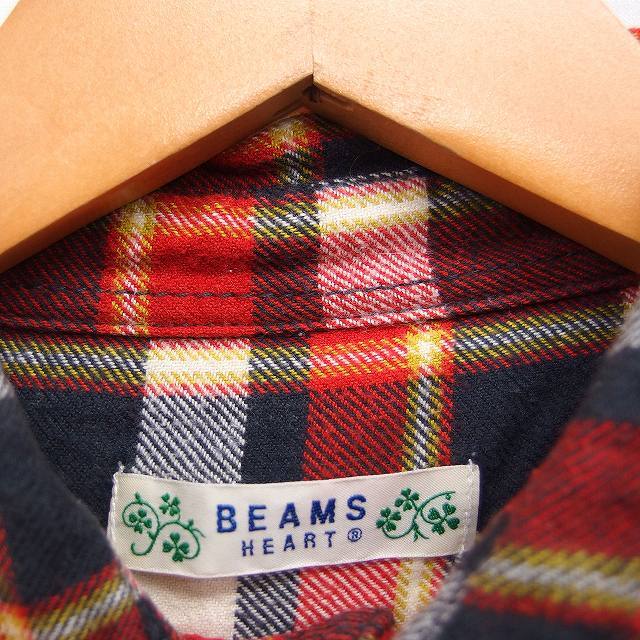 ビームスハート BEAMS HEART チェック シャツ 長袖 エルボーパッチ コットン 綿 レッドオレンジ /FT4 レディース