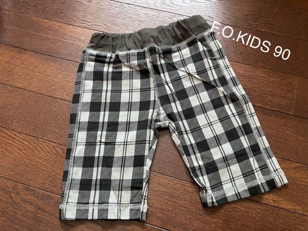 新品★90 F.O.KIDS☆柔らかい♪動きやすい♪ハーフ パンツ 半端丈☆綿100% ズボン 短パン エフオー チェック柄 グレー黒