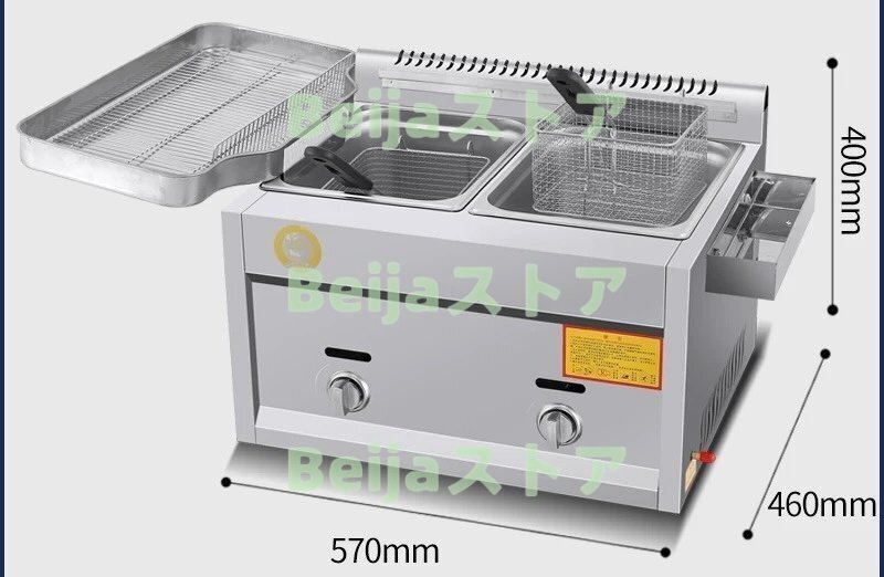 幅広い用途: レストラン、スーパーマーケット、ファーストフードレストラン、スナックバー、家庭での使用など、あらゆる種類の料理、フライドポテト、チキン、魚、玉ねぎなどに適した商業用途に非常に適しています。業務用ガスフライヤー、アウトドア用ガスフライヤー、ダブルバーナー業務用フライヤー