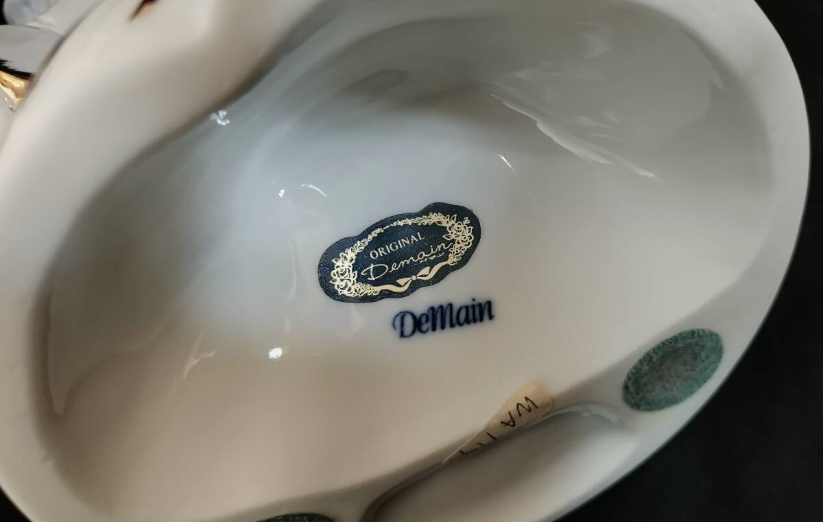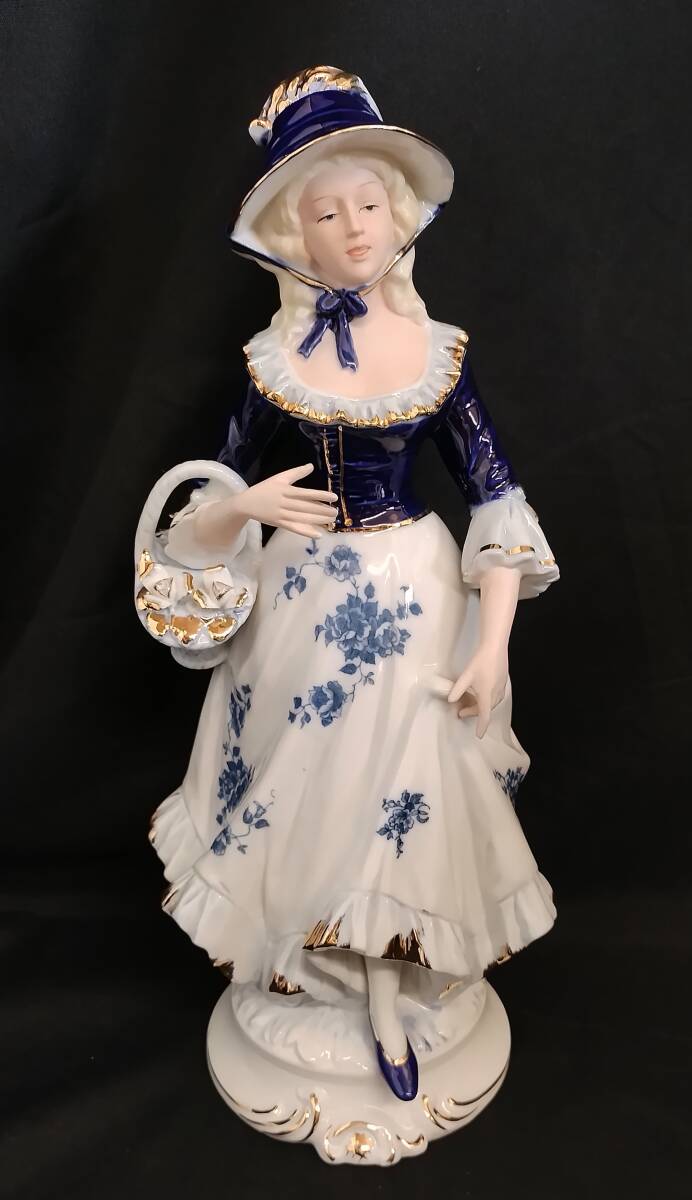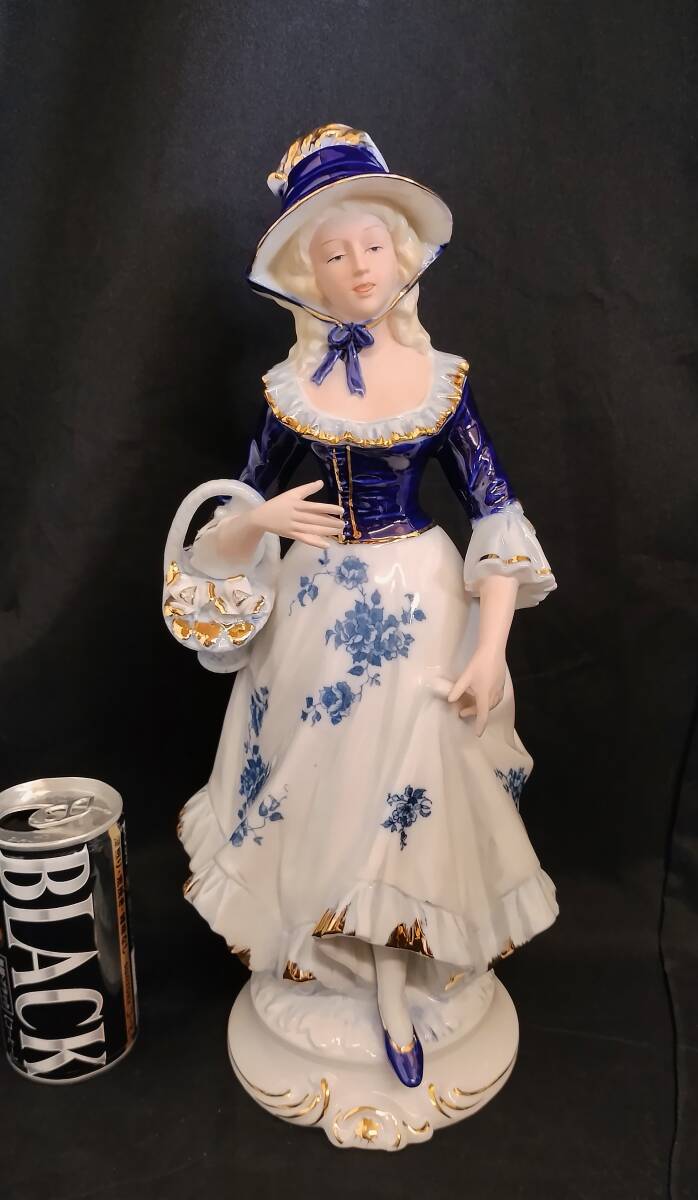 美品■Demain■ドマン 陶器 人形 約34×17㎝ フィギュリン 貴婦人 インテリア 置物