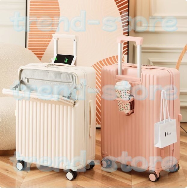 スーツケース Mサイズ 機内持ち込み カップホルダー 充電 USBポート フック搭載 キャリーケース キャリーバッグ ビジネス 旅行 出張