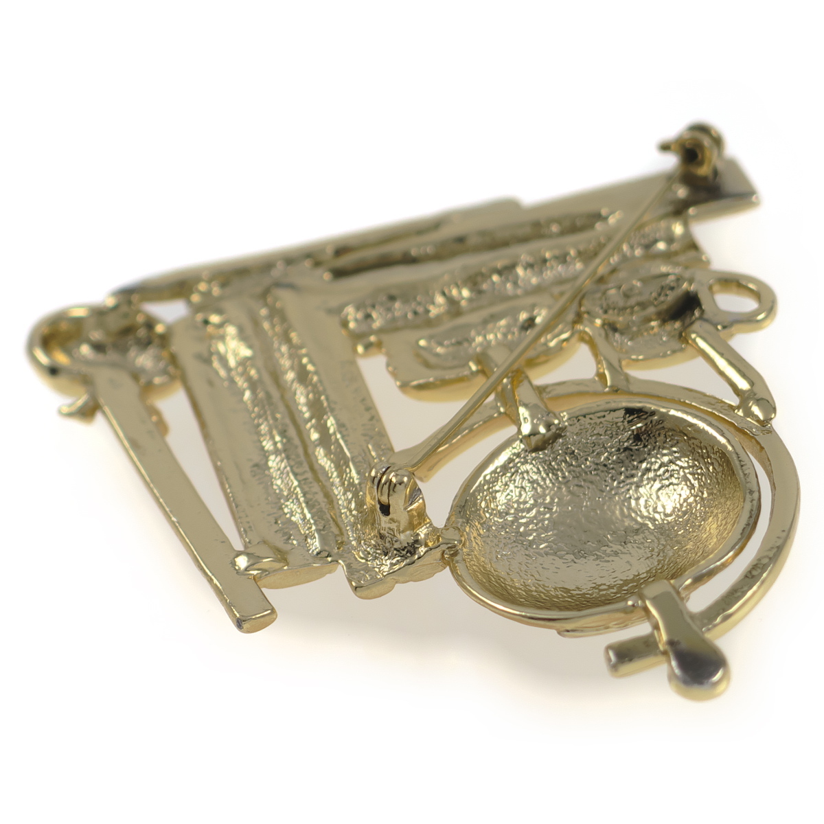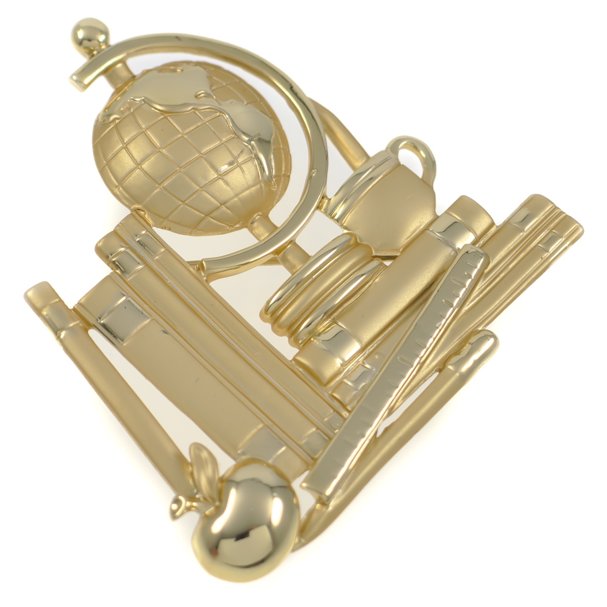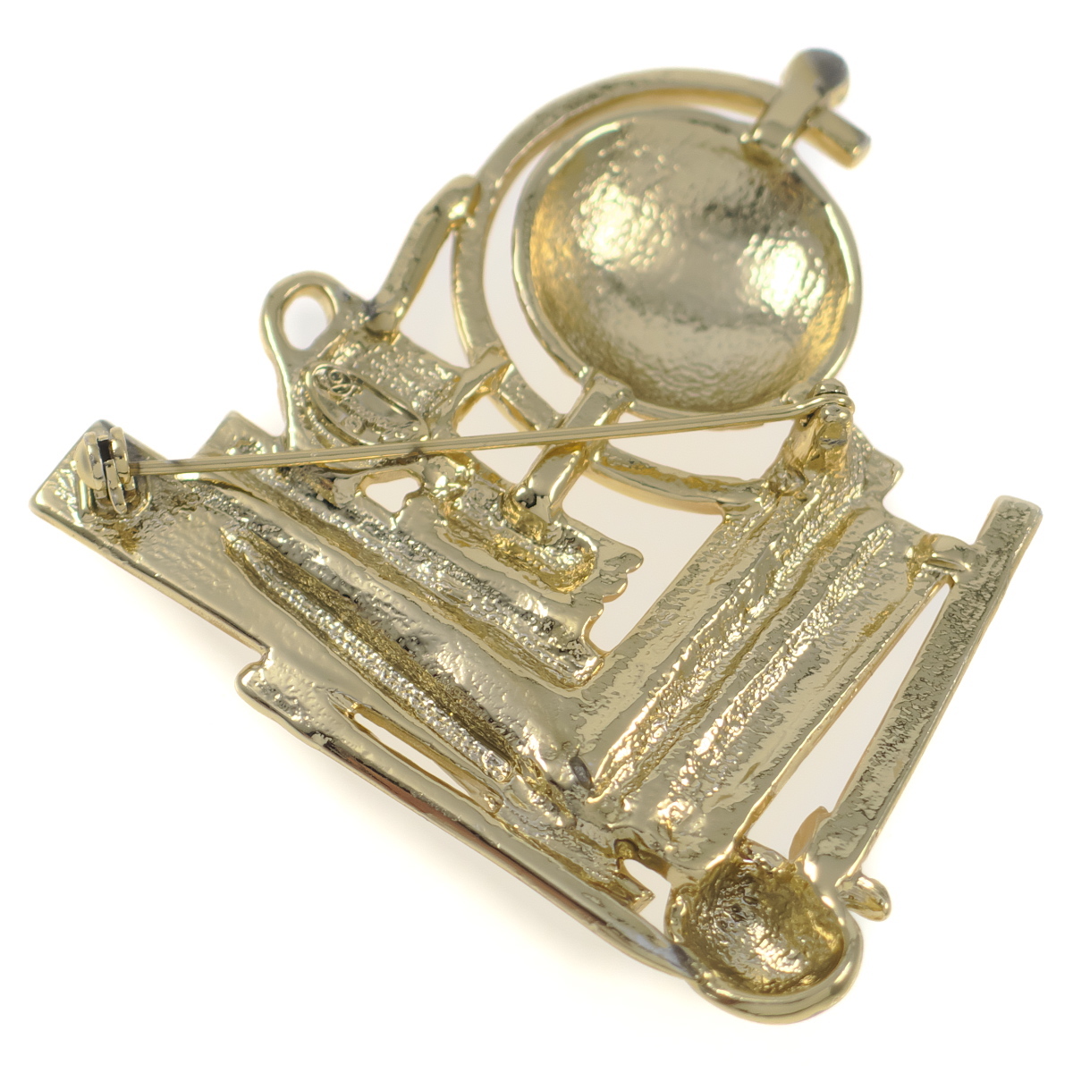 A10274◆【DANECRAFT】◆ 教授の机上モチーフ 地球儀 本 リンゴ ペン 艶消しゴールドトーン ◆ ヴィンテージブローチ ◆