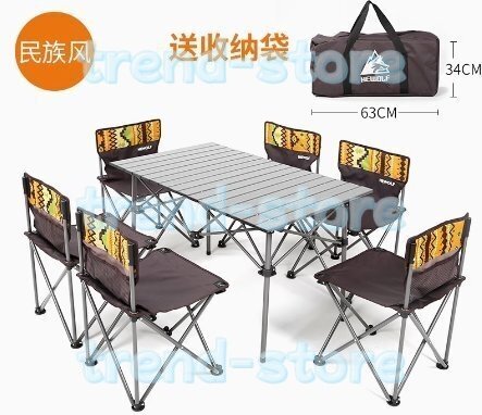 ■状 態:新品未使用 ■カラー:画像参照 ■テーブル:92*55*53cm ■チェア:35*37*58cm ■耐荷重 :テーブル(約)100kg チェア(約)130kg ■素材/600Dオックスフォード布 、構造部材: アルミ80% 鋼20% 【セット内容】:1*テーブル、6*チェア、収納袋付き
