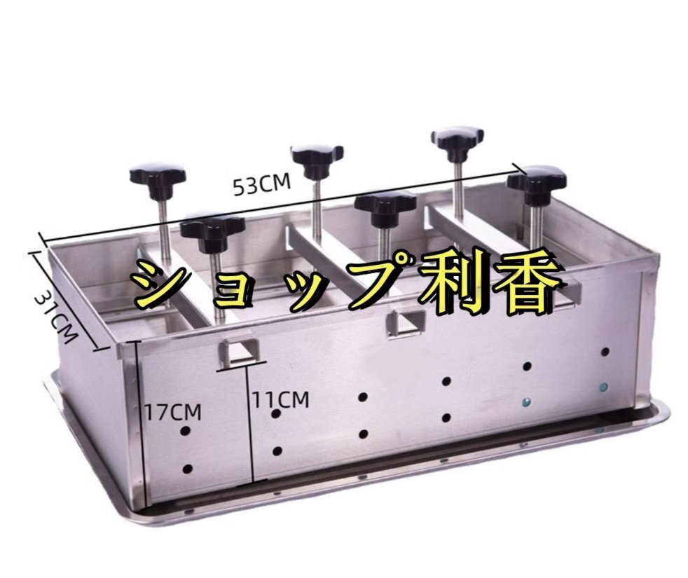 ステンレス製の肉プレス型は、お気に入りの料理にぴったりの形の肉レンガを作りたい人にとって必須のキッチンツールです。ディナーパーティーを主催する場合でも、単に自分や家族のために食事を準備する場合でも、このミートプレスはその利便性、多用途性、全体的な機能性で必ず感動するでしょう。特徴:製品名: 肉プレス金型製品正味重量: 金型 13.7KG製品サイズ: 53*31*17CM プレート 60*40CM 圧力ポート高さ 12.5CM 高さ調節可能 3.5-13cmパッケージは以下を含みます:1 * ステンレス鋼ミートプレス金型