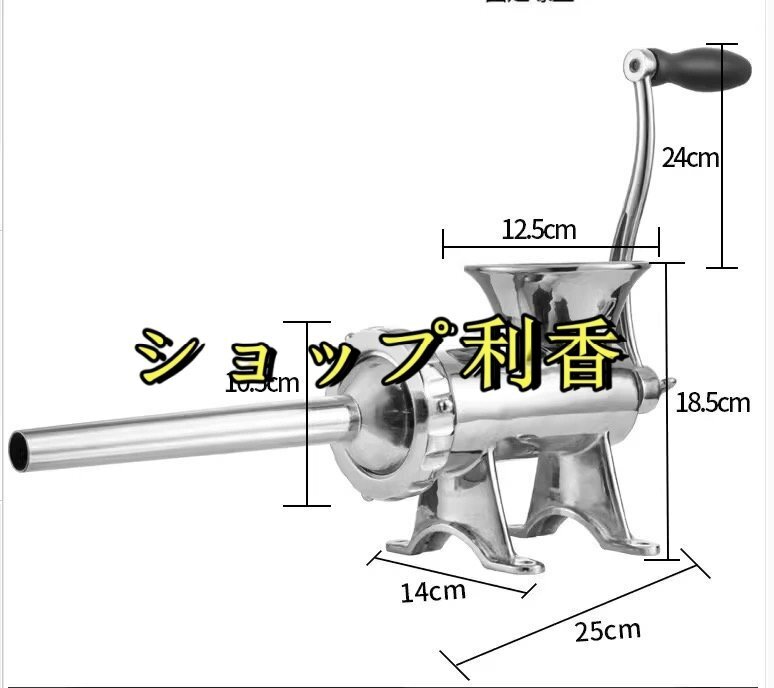 【用途】:肉をミンチにする、胡椒を砕く、落花生を砕く、麺を搾る、腸詰め、ソーセージ、果物ピューレ/ニンニク/コショウ/キノコ/魚などを粉砕する(鶏の骨格、鴨骨格を粉砕できます)