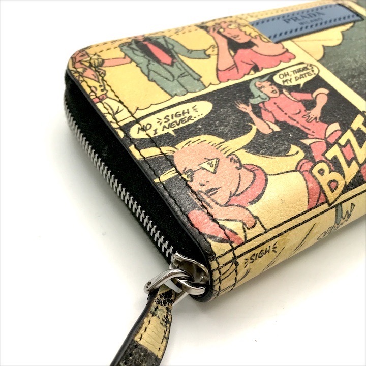 良品 PRADA プラダ ロゴ コミック ラウンド ファスナー 長財布 ウォレット ブルー ブランド ユニセックス a6387 | |||