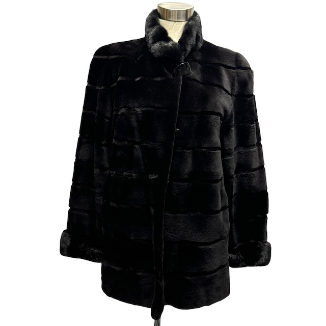 アルティマ Altima ミンク シェアードミンク 切替 毛皮 コート ショート丈 リアルファー 黒 ブラック 9-11号 レディース