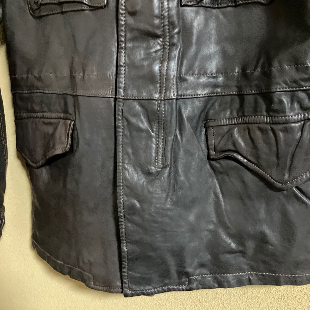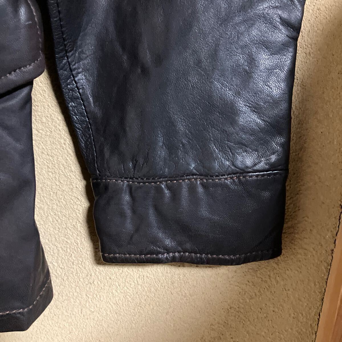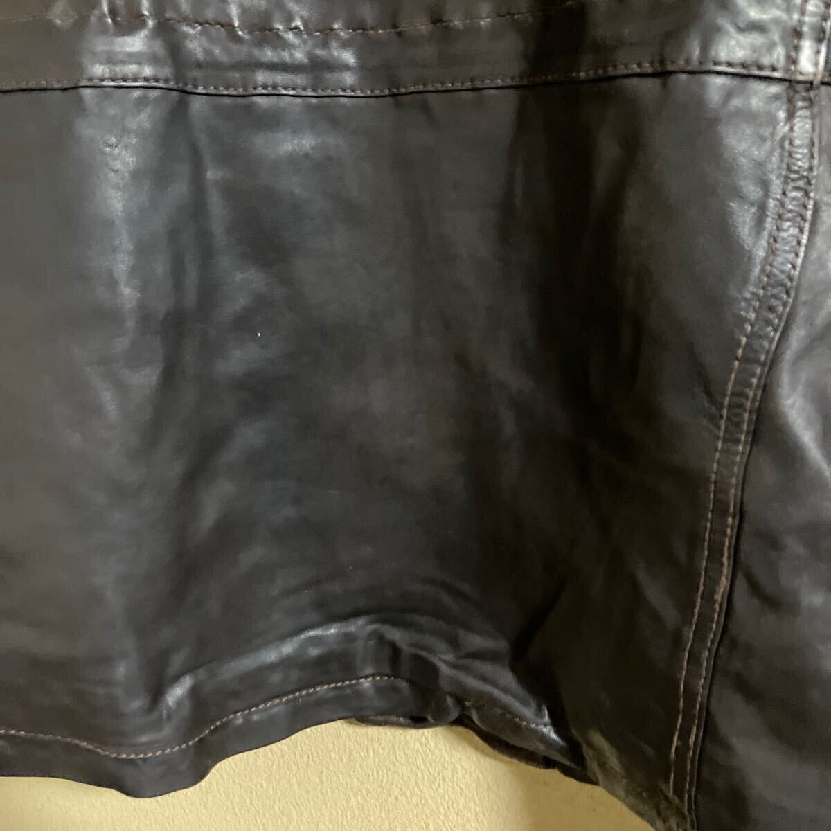 植物の汁液でなめしたラムレザーで作られています。ベジタブルタンニンの特徴ですが革の表面はなめらかな仕上がりになっています。最終的に洗いを掛けますので洗い後のしわはどうしも残ります。色はBtown でMサイズです。