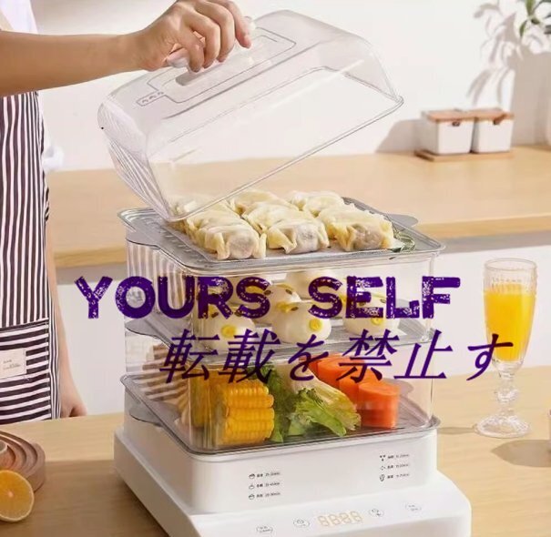 品質保証★ 電気蒸し器 3段 蒸し器 電気 スチームクッカー 22L 大容量 電気汽船 多機能 家庭用 24H予約タイマー/2H保温 U250