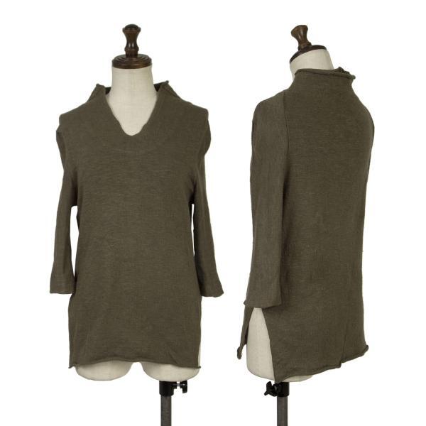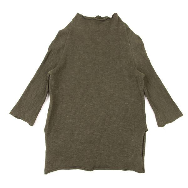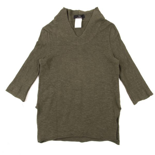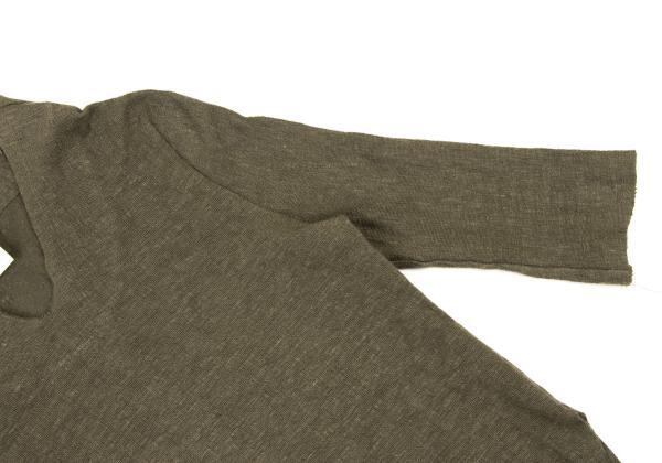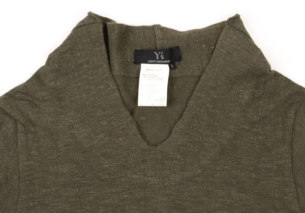 ワイズY's リネンストレッチ半袖ニットトップス カーキ3 |