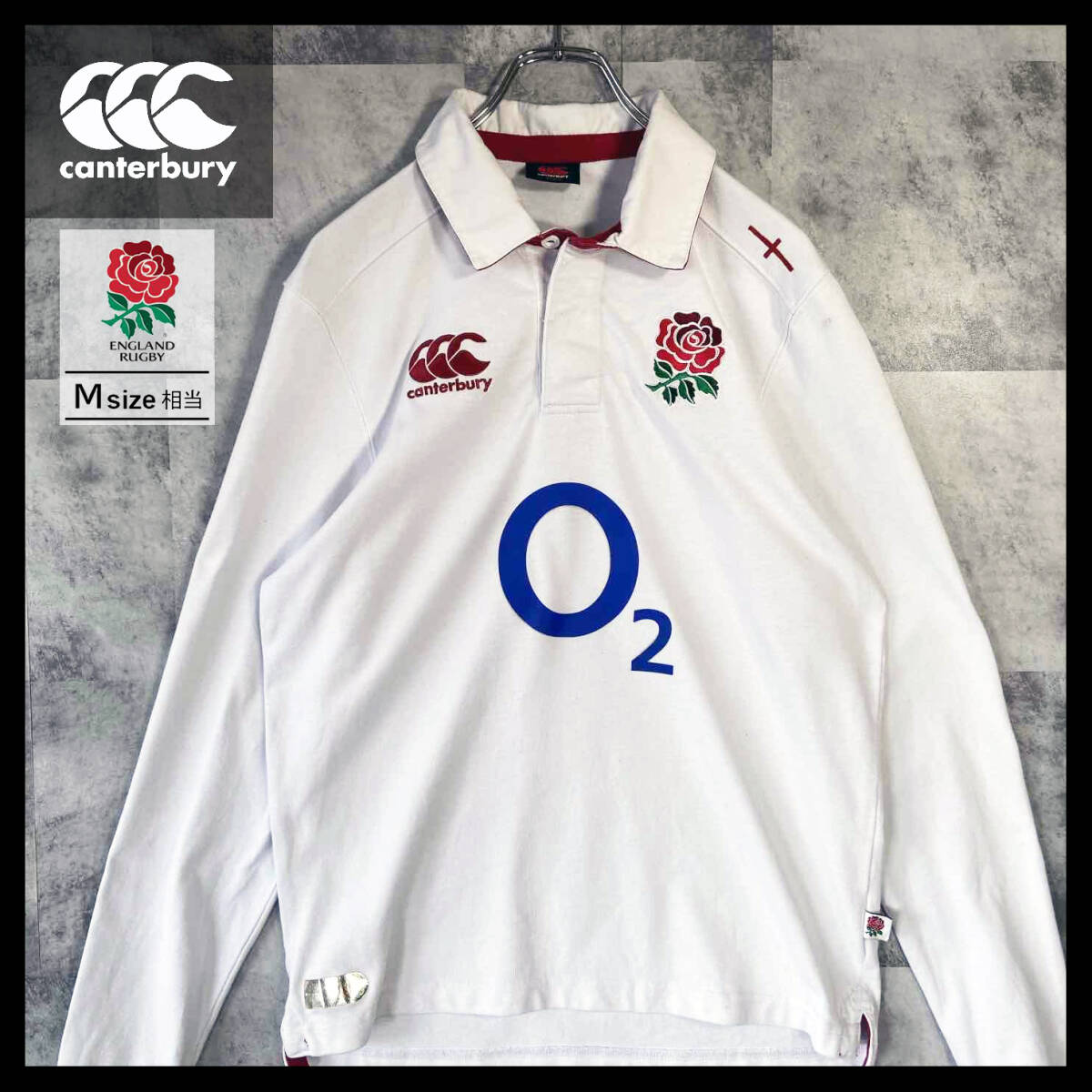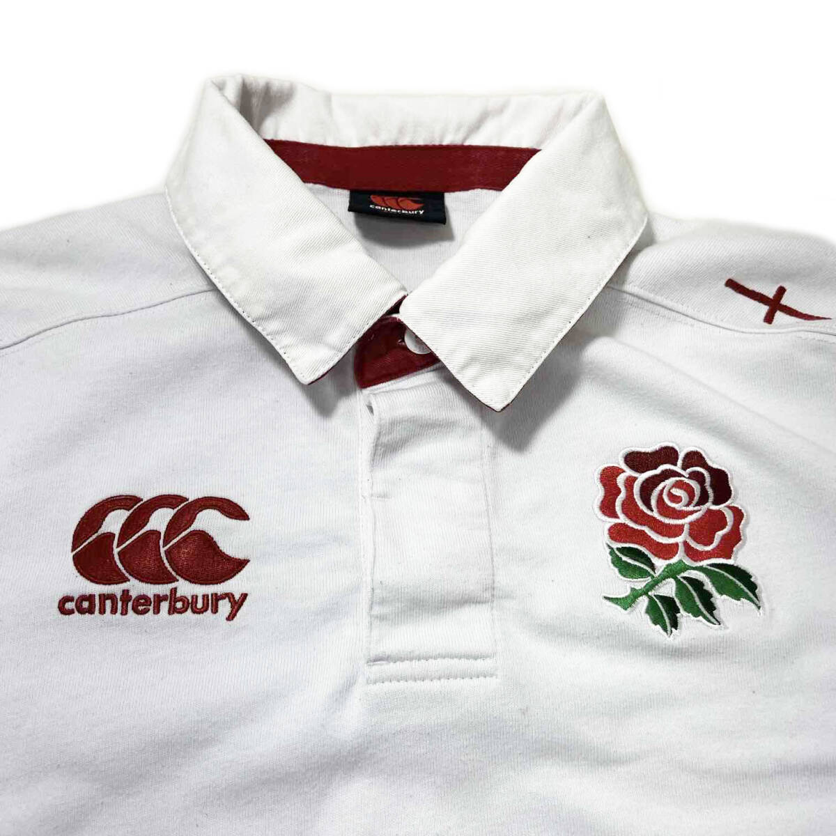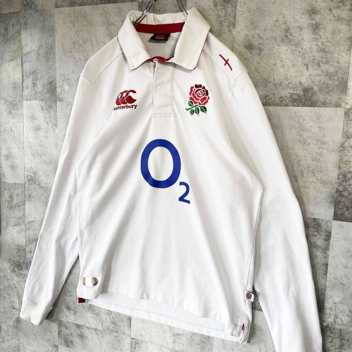 【USED】カンタベリー Canterbury インクランド代表 England 長袖 ラガーシャツ ラグビー 古着 ホワイト(Mサイズ相当) ☆送料無料☆