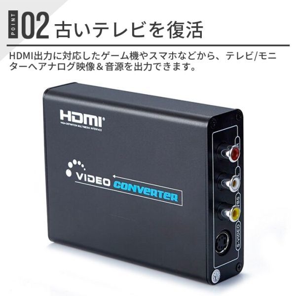 HDMI端子が無い古いテレビ/モニターでも、S端子やコンポジットがあれば大丈夫なんです!HDMI出力に対応したゲーム機やスマホなどから、テレビ/モニターへアナログ映像&音源を出力できます。眠っていたTVをサブモニターとして蘇らせましょう!