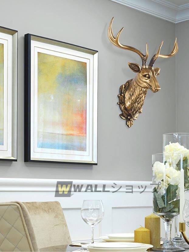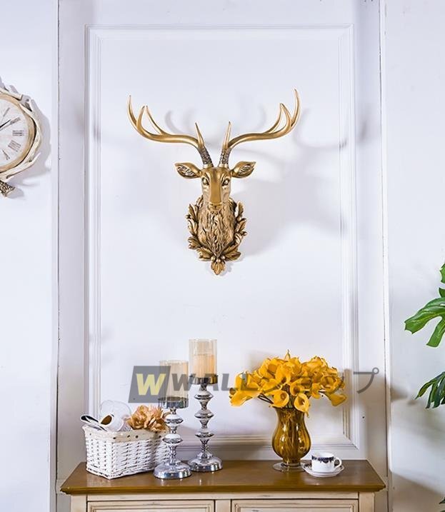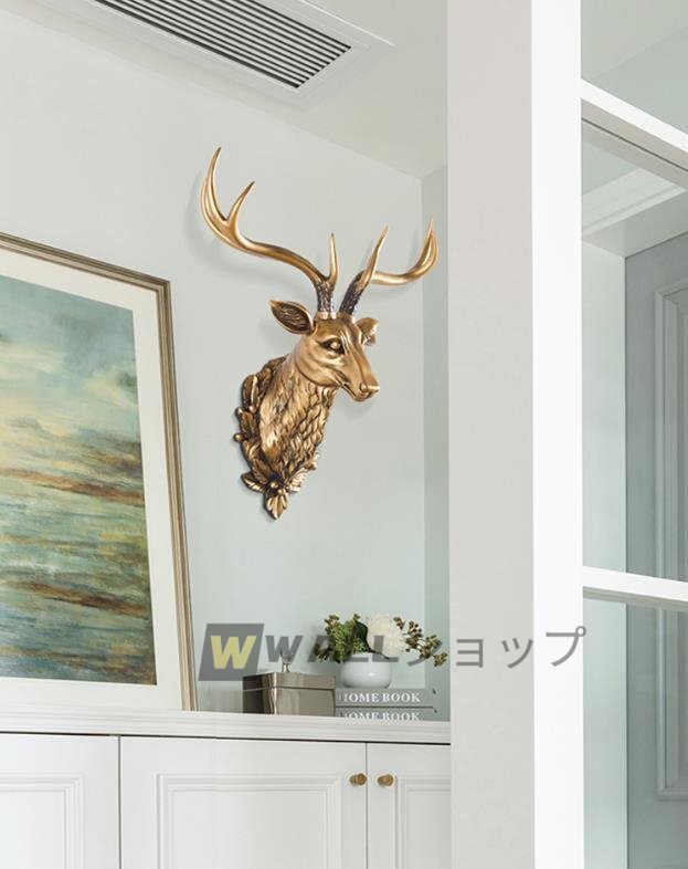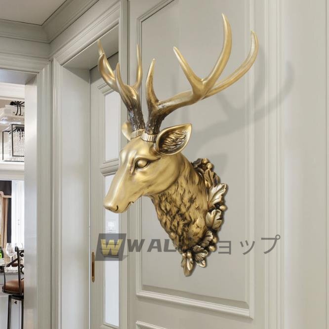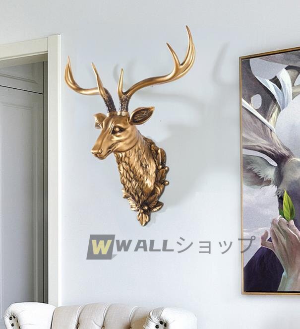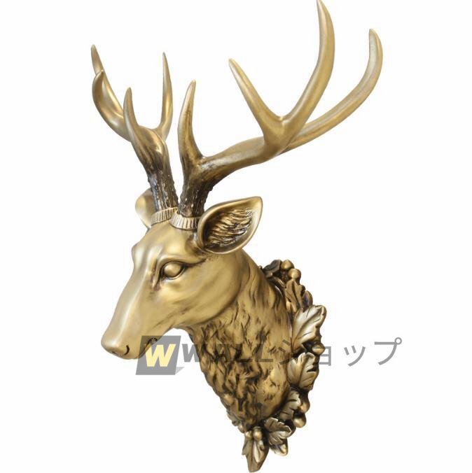 強くお勧め★特価☆家 装飾 3D 鹿の頭 彫像 壁の装飾 彫刻 ヴィンテージ リビングルーム 樹脂の彫像 アンティーク ゴールド 壁掛け オブジ