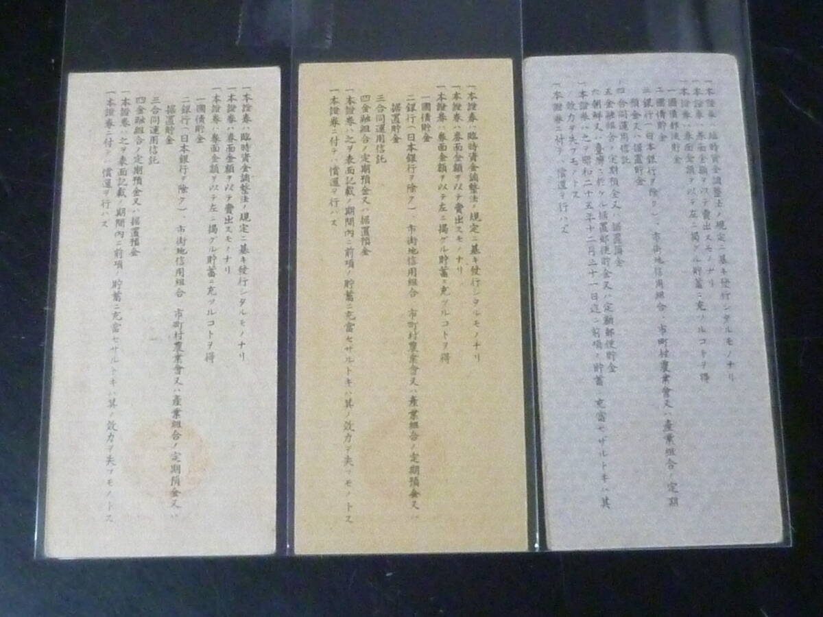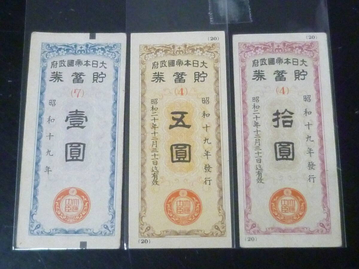25F A №27 貯蓄券 大日本帝国政府 昭和20年前後 壹圓・五圓・拾圓 計3枚