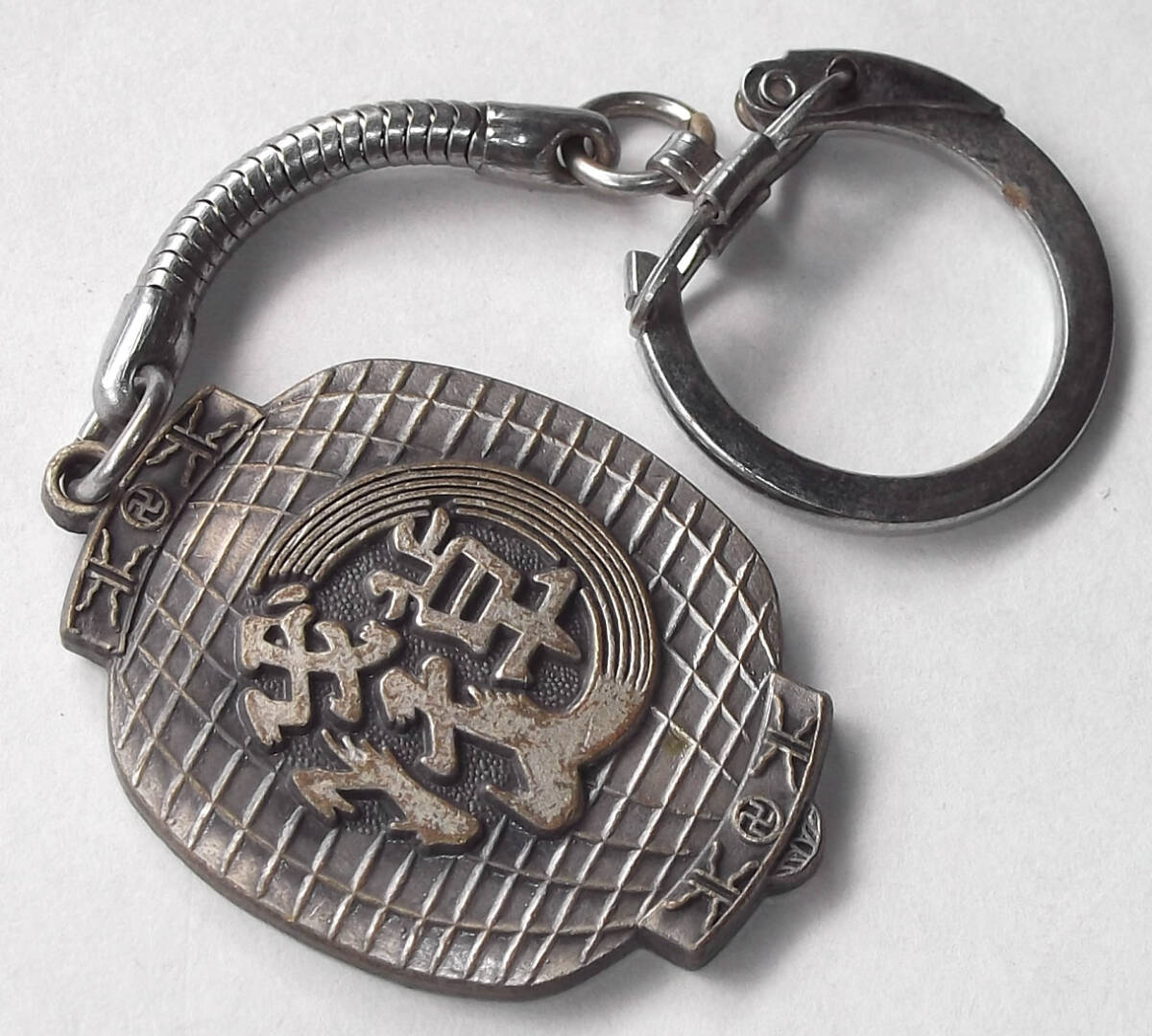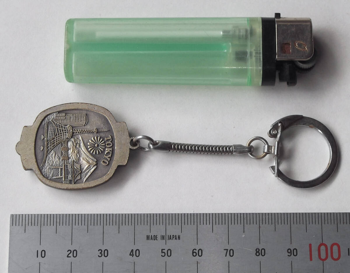 昭和のお土産キーホルダーです。時代物でスレキズヨゴレいたみサビ金属変色など経年感が強めです、だいたいの様子は画像参照ください。金具にもメッキ曇りやさびなど劣化あり、そのほか時代汚れや経年感みられます。重量およそ22g。画像のメジャーやライターは大きさ参考用です。他にも古書やアンティーク雑貨などをいくつか出品しております。