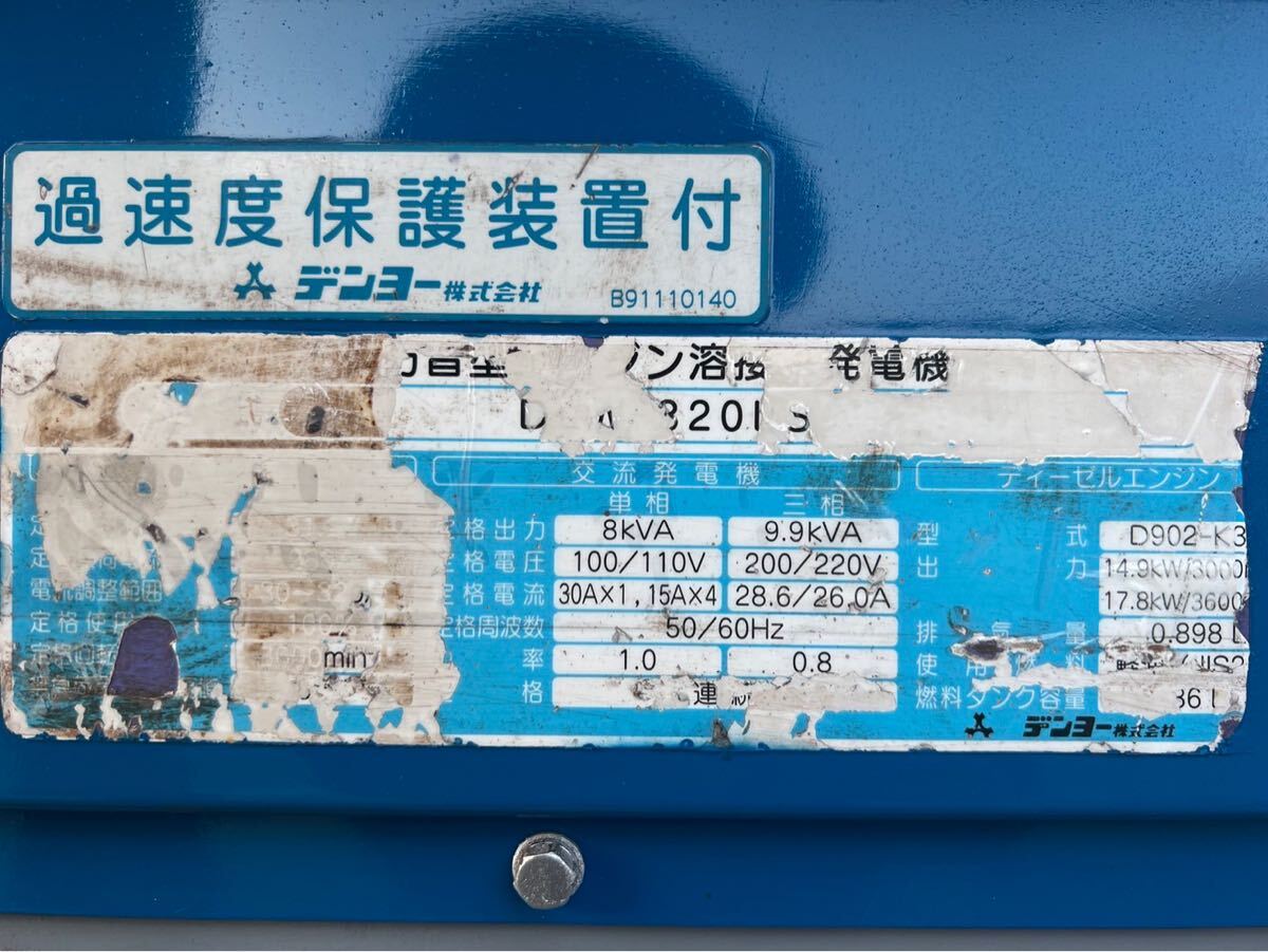 デンヨー 防音型 発電機 ディーゼルエンジン 溶接機 DLWー320LS 動作確認済み 良品。