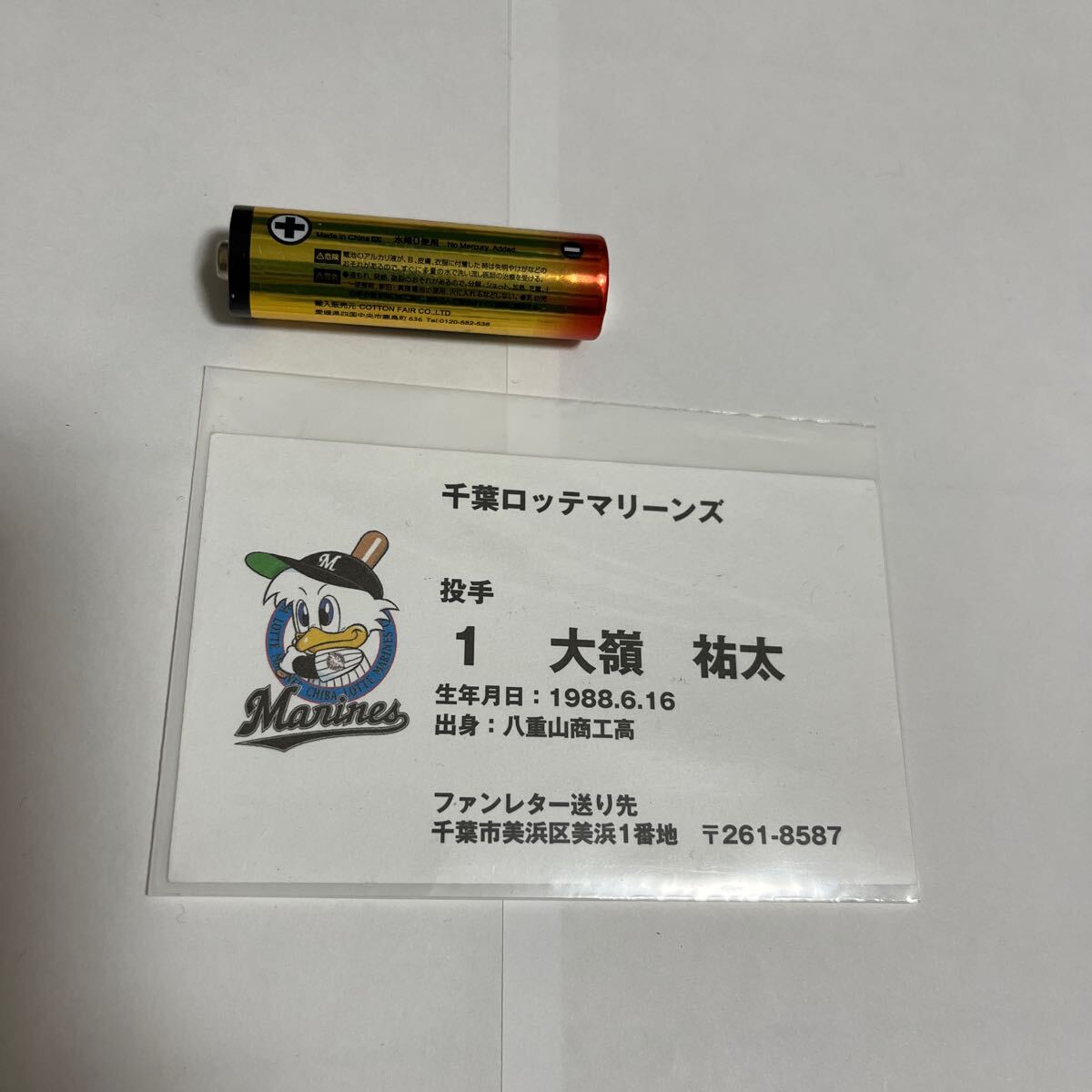 元千葉ロッテマリーンズの大嶺祐太さんの名刺です。ファン感謝デーでいただきました。大切に保管してきましたが、入手から年数が経過しておりますので、細かなコンディションを気にされる方のご入札はご遠慮ください。