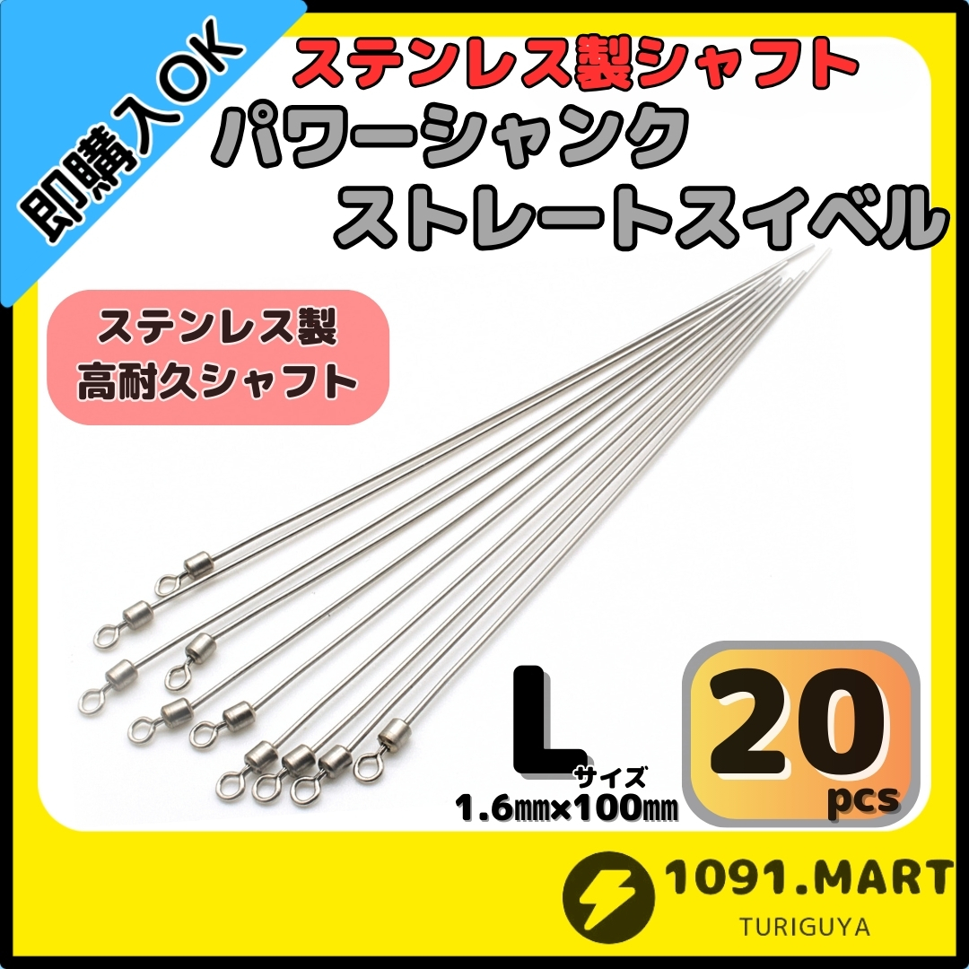 【送料無料】パワーシャンク ストレートスイベル Lサイズ 20本 高耐久ステンレス製 ロングシャフト チェリーリグ スピナー 仕掛け自作に!