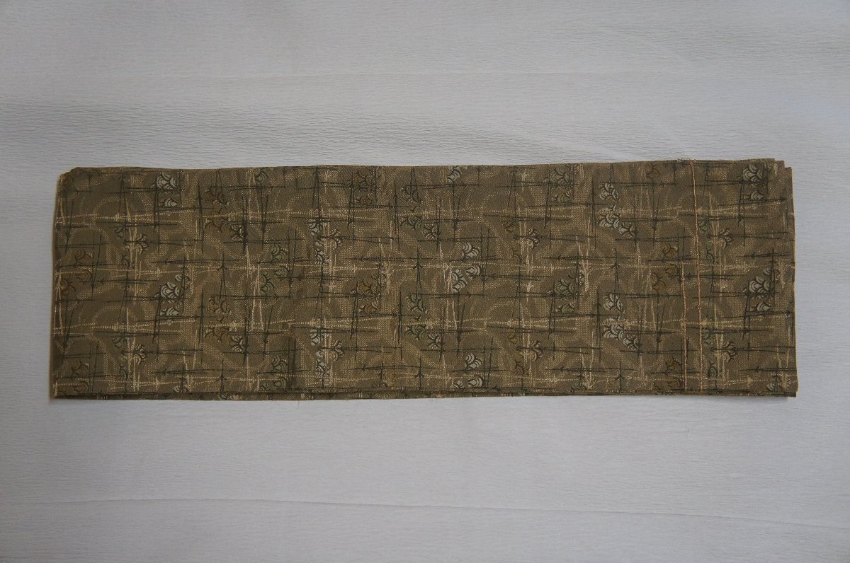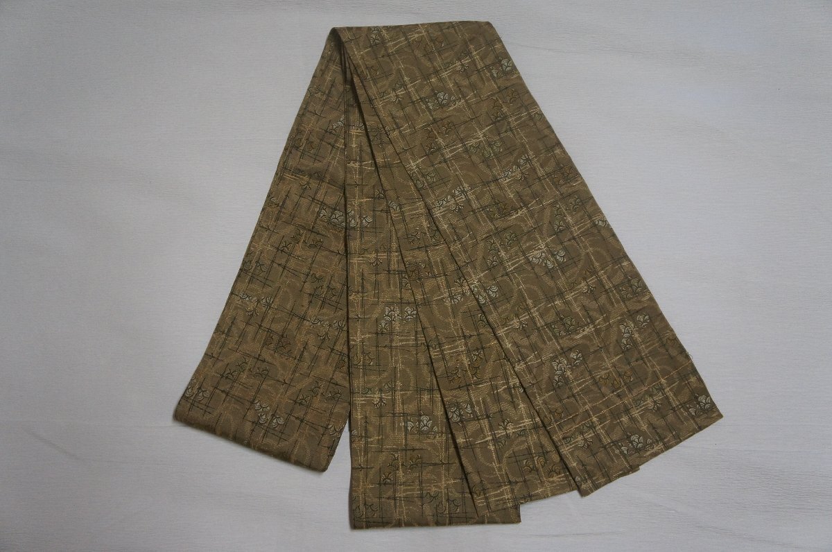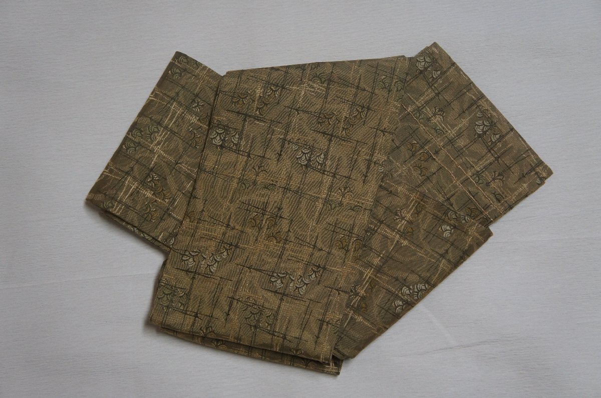 正絹古茶色地松に松葉模様金糸入り半巾帯[N15829]