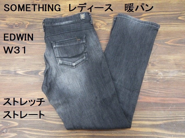 31 SOMETHING 暖パン レディース EDWIN ストレッチ ストレート ジーンズ パンツ ブラック サムシング( デニム 防寒