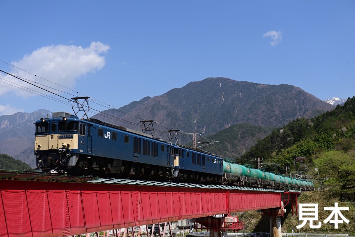 出品の写真はJR中央西線を走るEF64牽引の貨物列車の写真でございます。