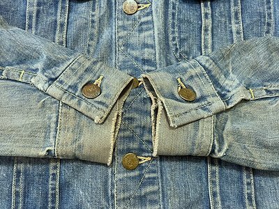 色は汚れたデニムで縦落ちになっていて袖のハチノス具合も格好いいです。