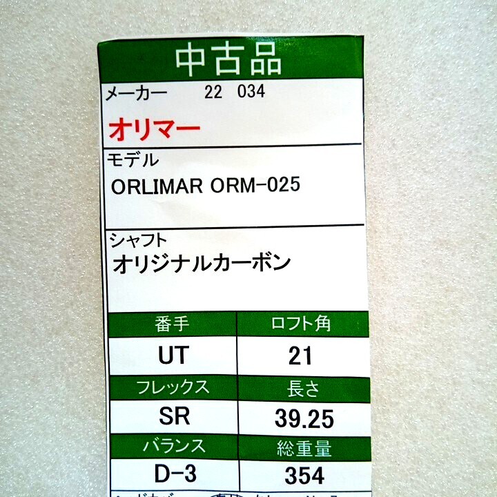 【即決価格】【UT】 オリマー/オリマーORM−025/21度/オリジナルカーボン/FLEX SR/カバー無し