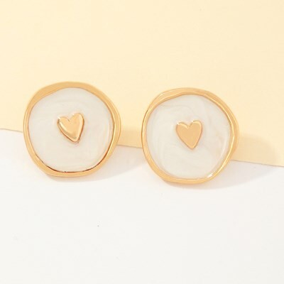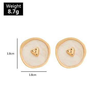 ピアス ゴールド ハート ホワイト 漆器 韓国 光沢 レディース ジュエリー ファッション 合金 ドロップ オイル 愛 ラウンド 女の子 #C94-7
