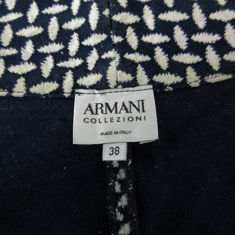アルマーニ コレツィオーニ ARMANI COLLEZIONI テーラードジャケット 総柄 シングル 肩パッド 38 S 紺 ネイビー 白 ホワイト