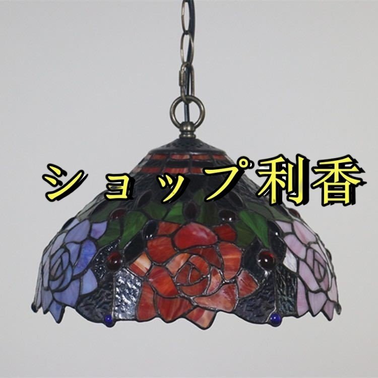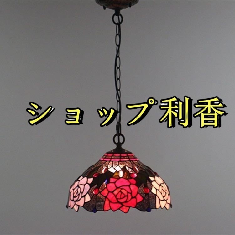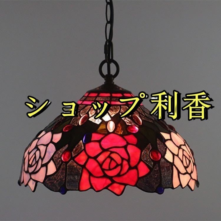 ウォールランプ 赤 ステンドランプ 天井吊り型ランプ シャンデリア ステンドグラス 花柄 ティファニー技法 照明