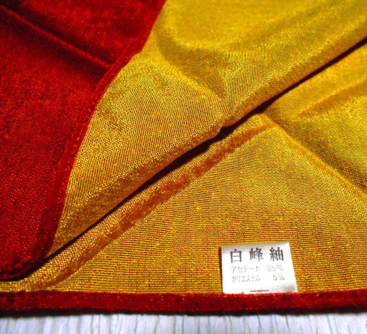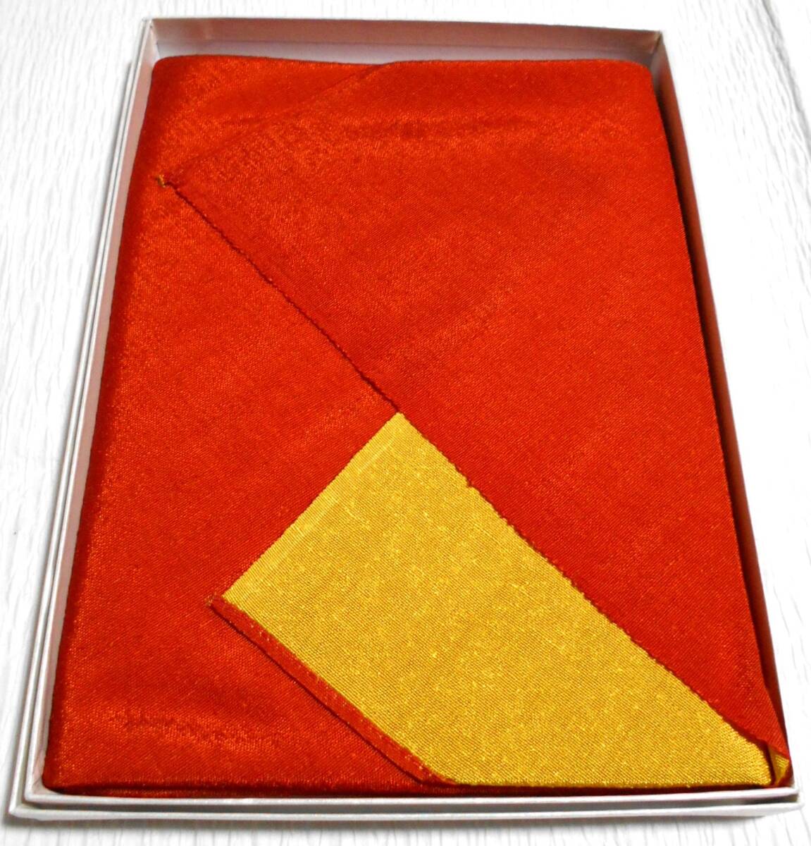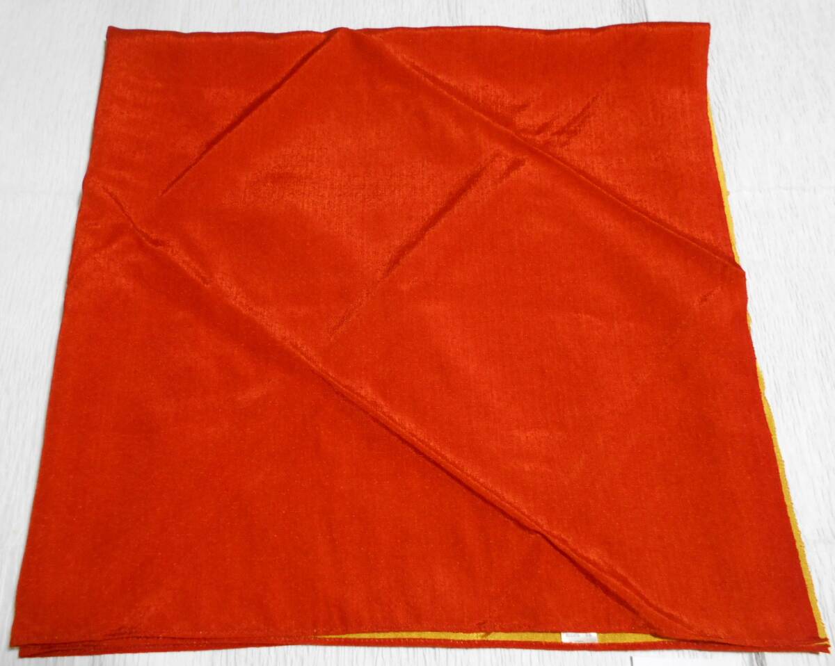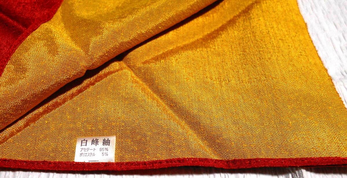 朱色と黄色のリバーシブルの白峰紬の風呂敷です。