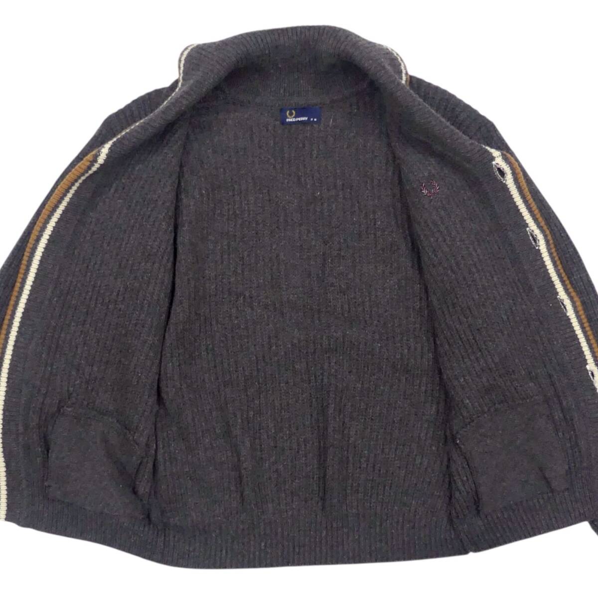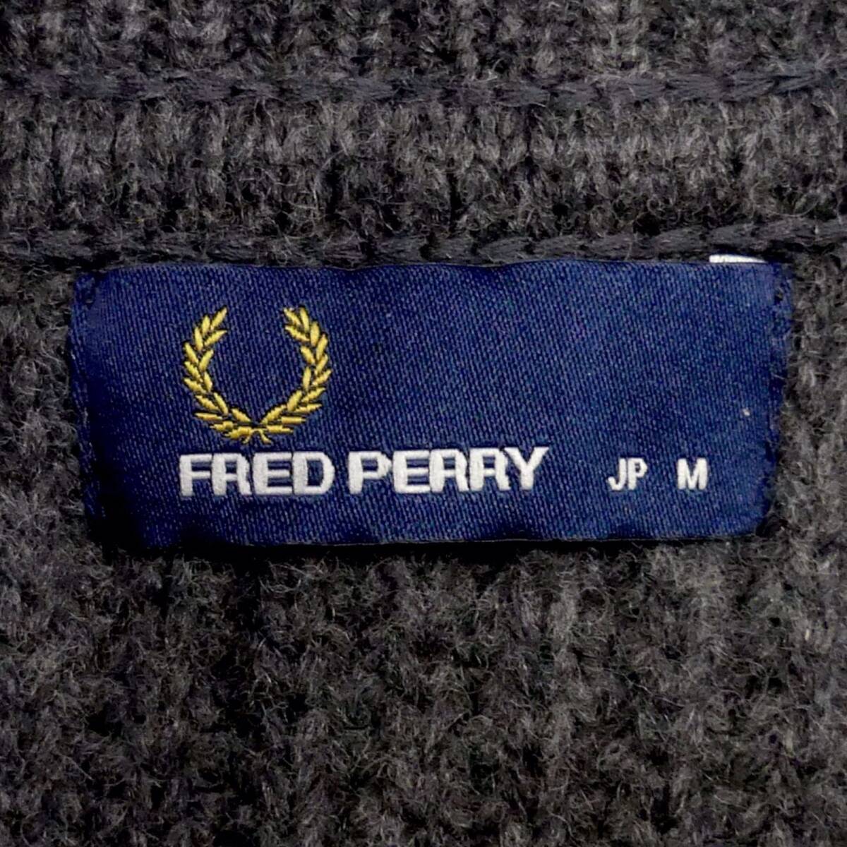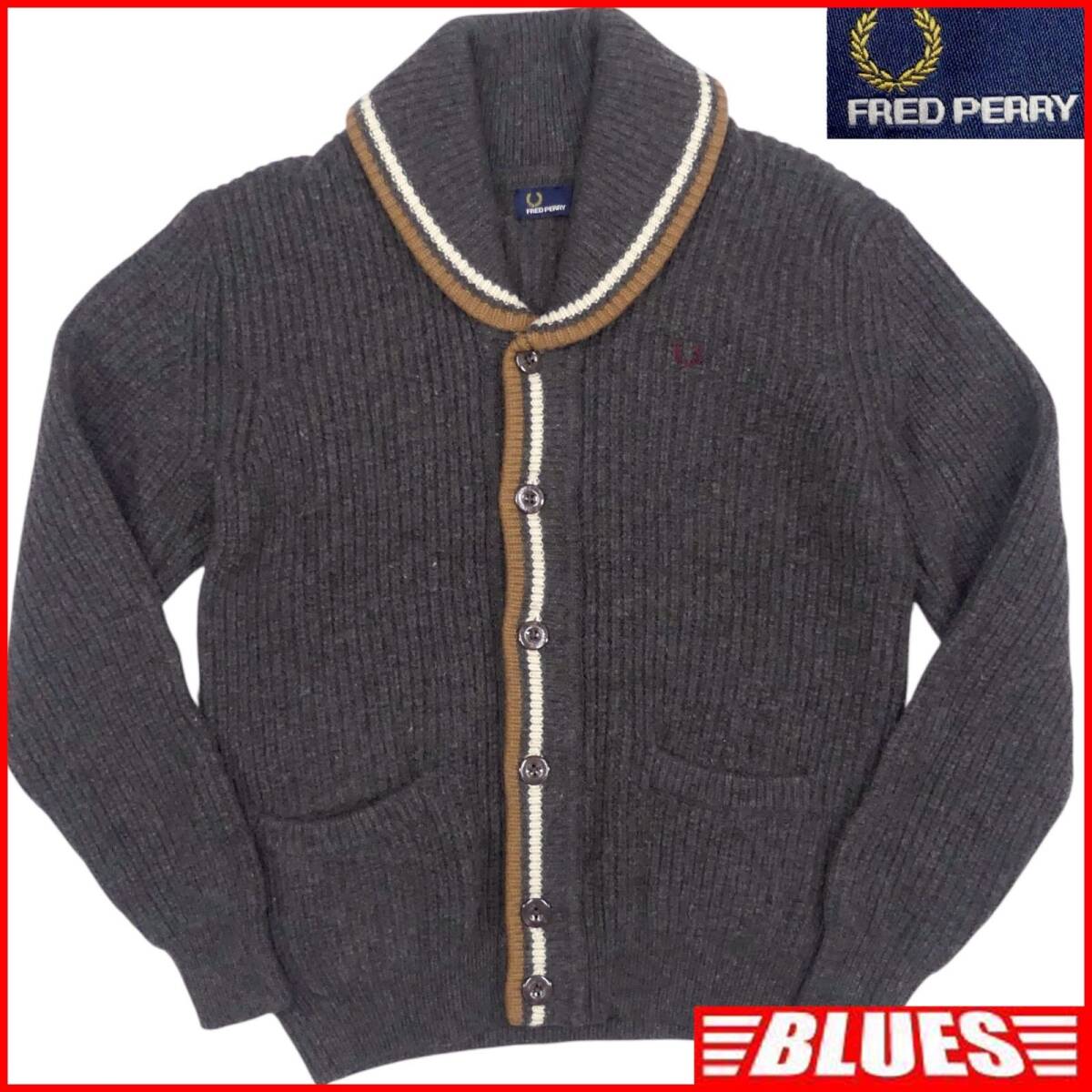 即決★FRED PERRY★メンズ M カウチンセーター フレッドペリー グレー ウール ニット セーター カーディガン ボタン