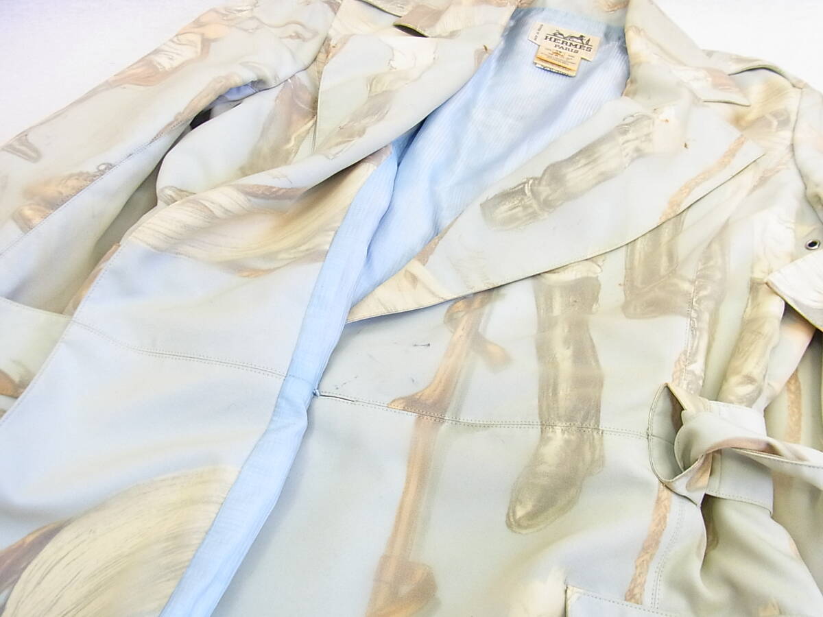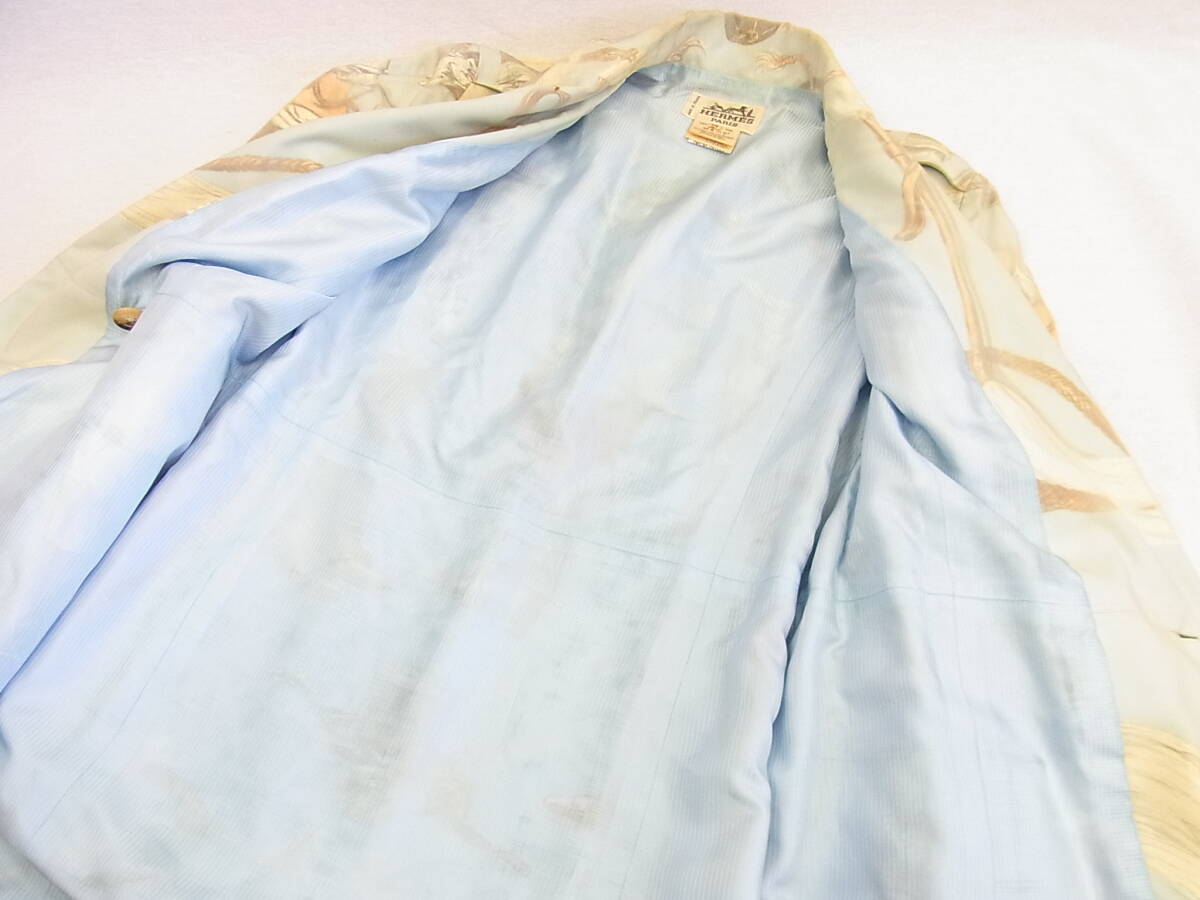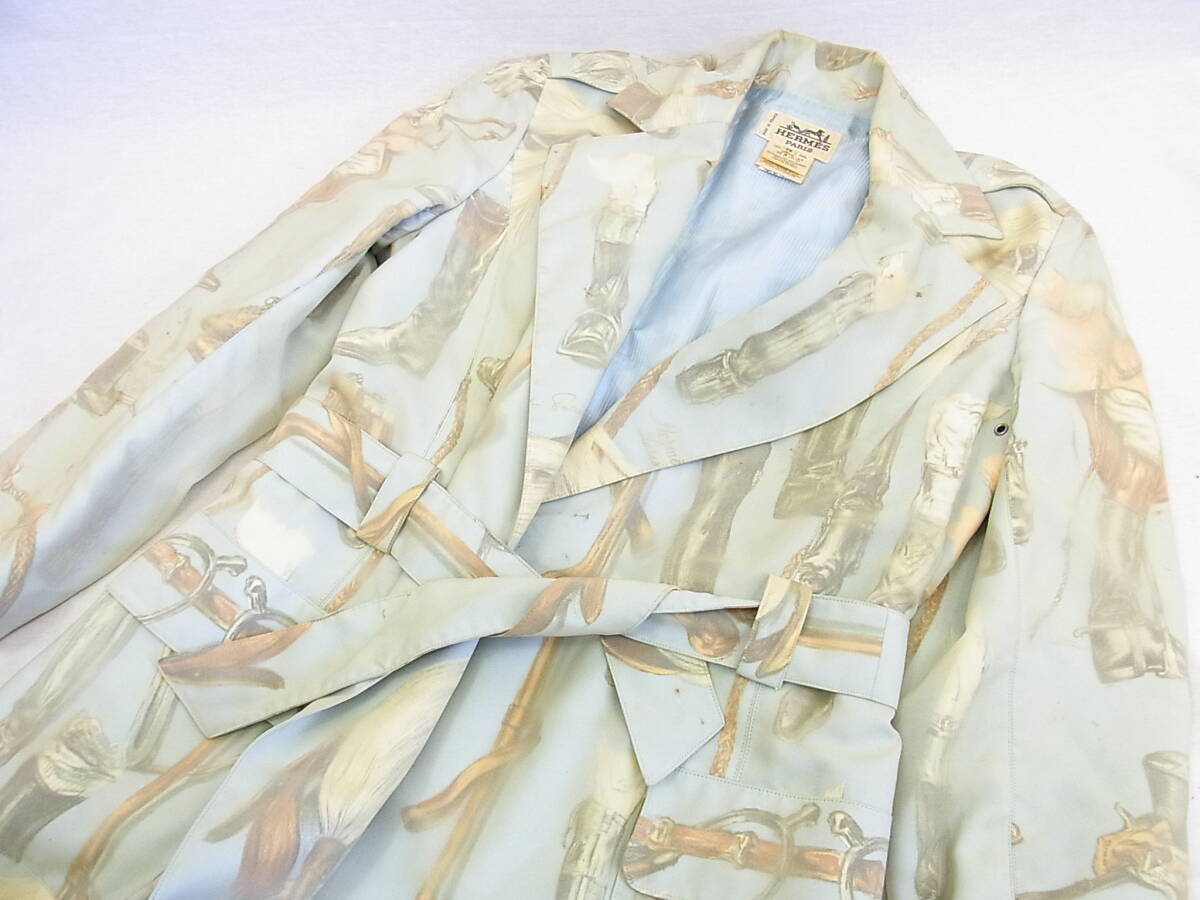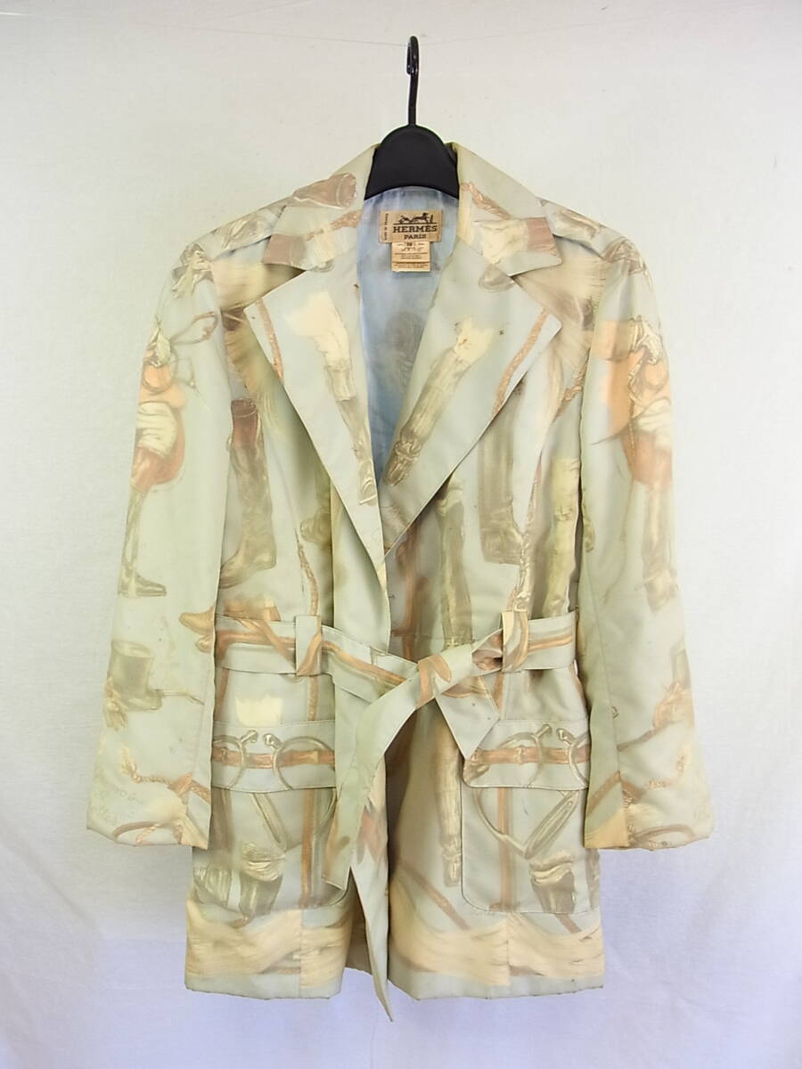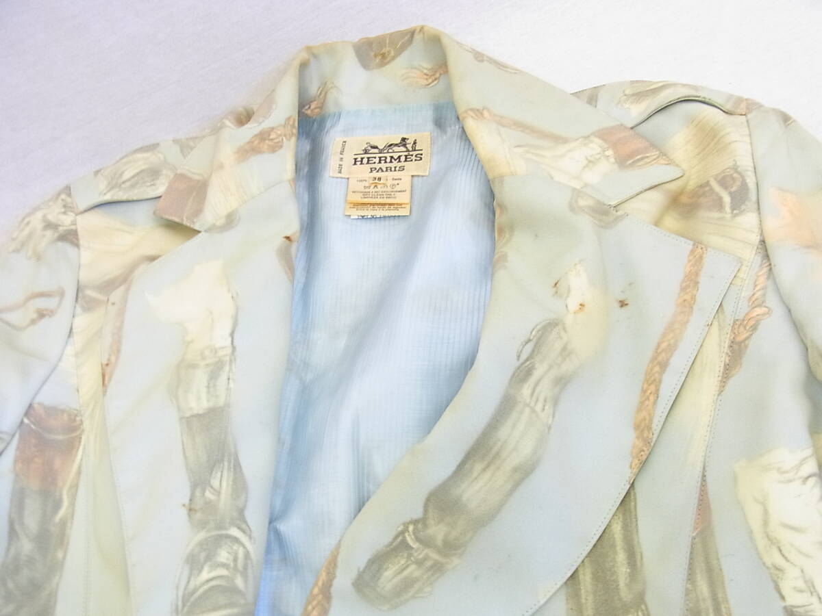 エルメスのシルク総柄ジャケット使用品です。 サイズは38、着丈78cm・肩幅41cm・袖丈56cm・身幅49cmになります。 素材はシルク100%、状態は所々汚れの付着がございますのでご了承下さい。この機会に是非どうぞ☆ 商品管理番号(97352) 12-155 | |