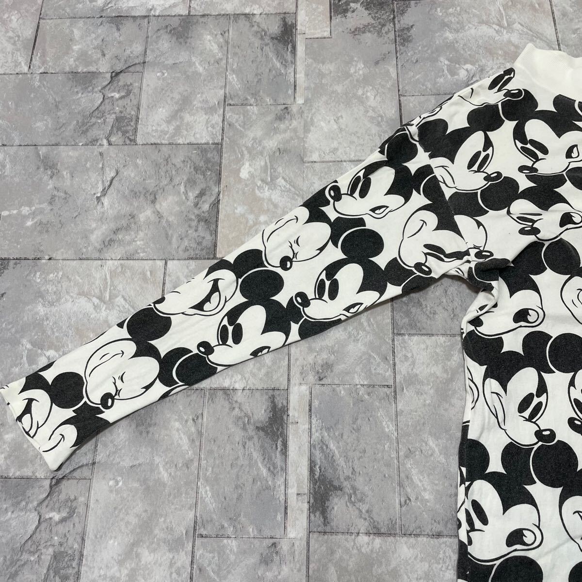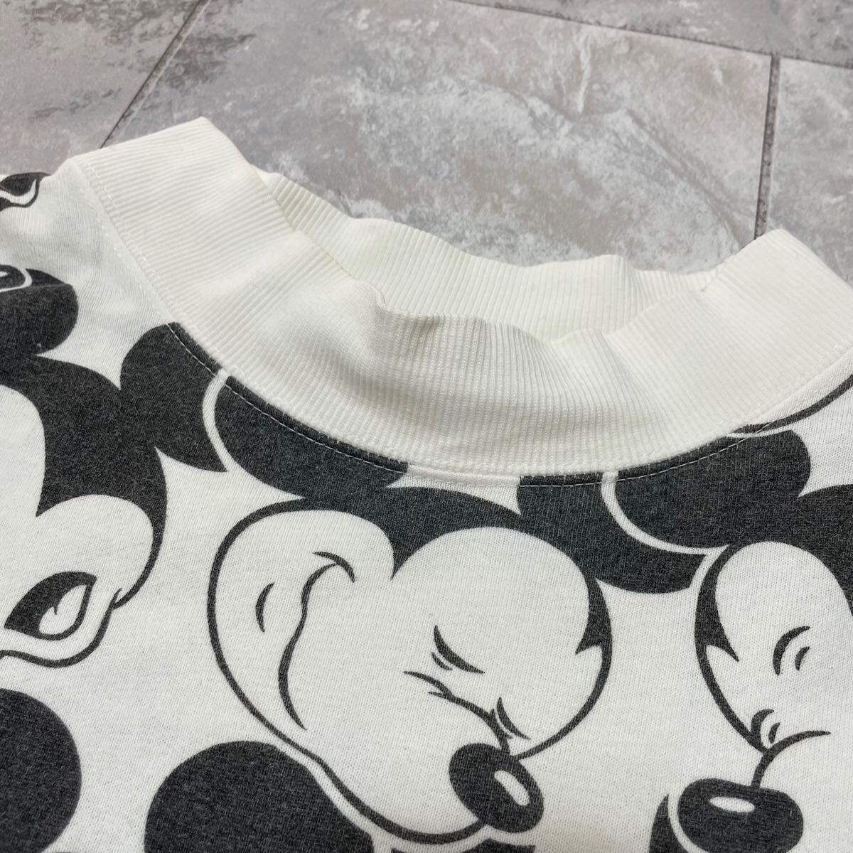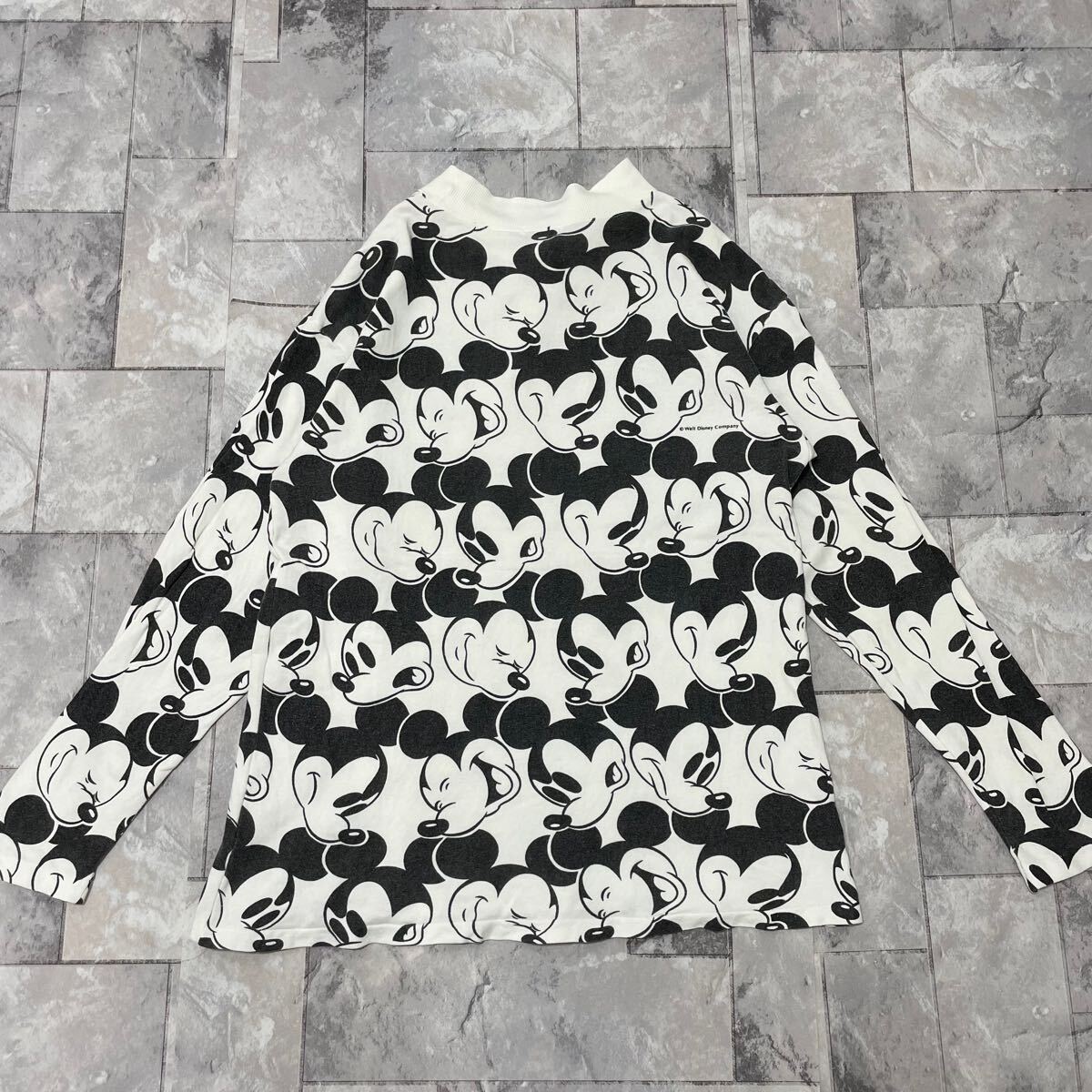 90s Disney ディズニー Mickey ミッキーマウス ロンT Tシャツ 長袖 総柄 モックネック 日本製 サイズL相当 ホワイト 玉FL3877