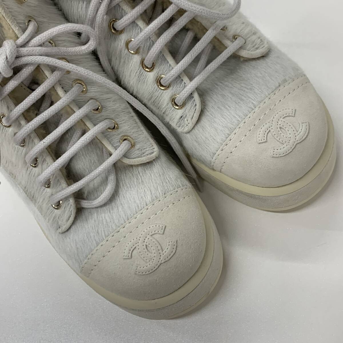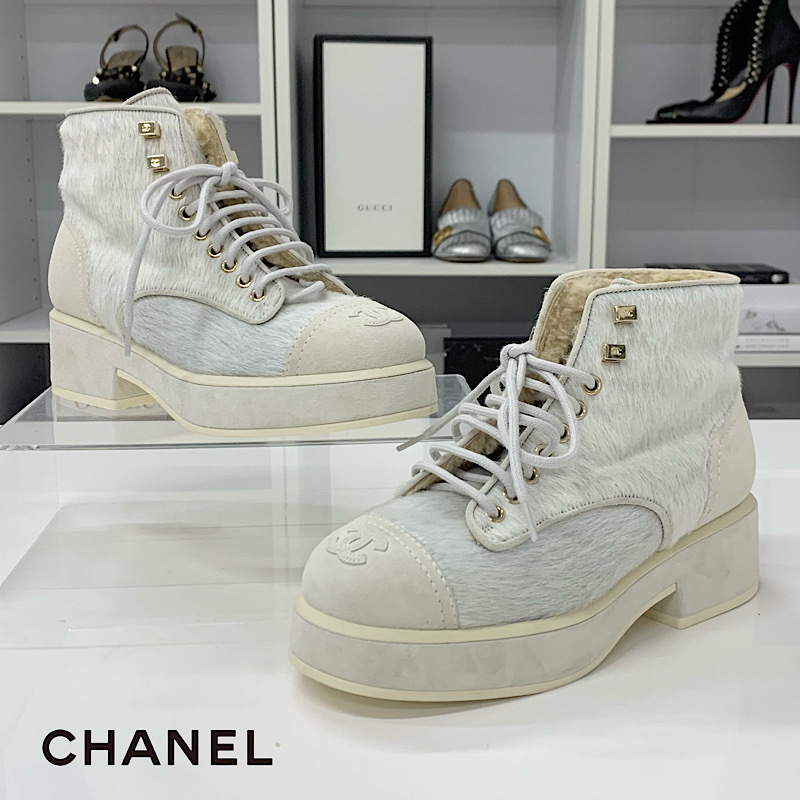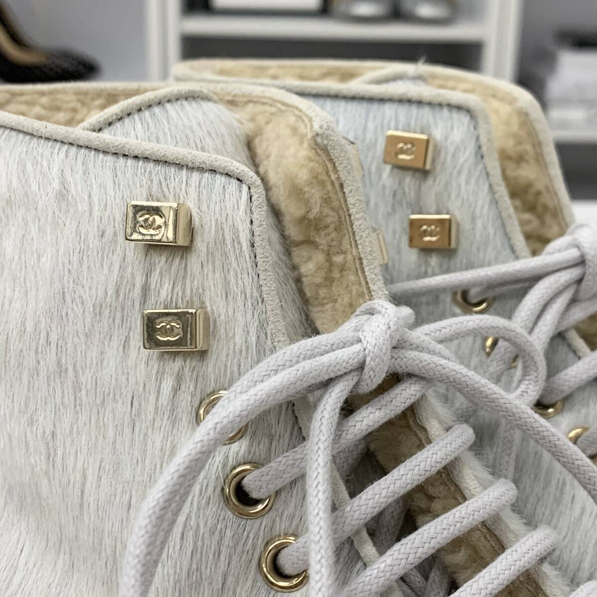 シャネル ココマーク ハラコ スエード ムートン レースアップ ショートブーツ ベージュ