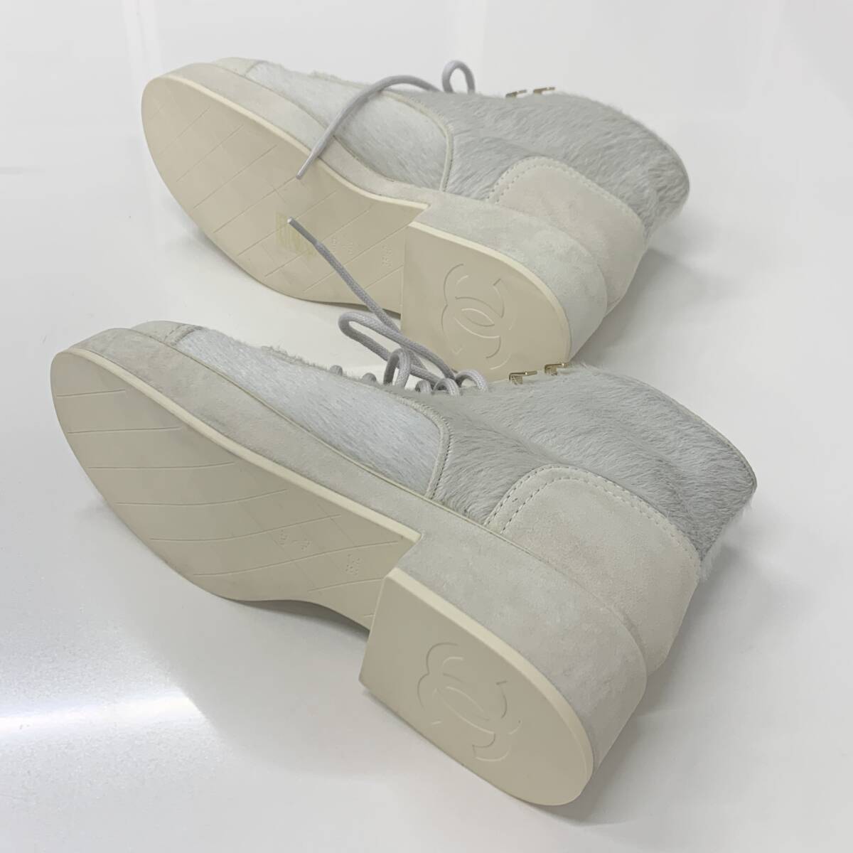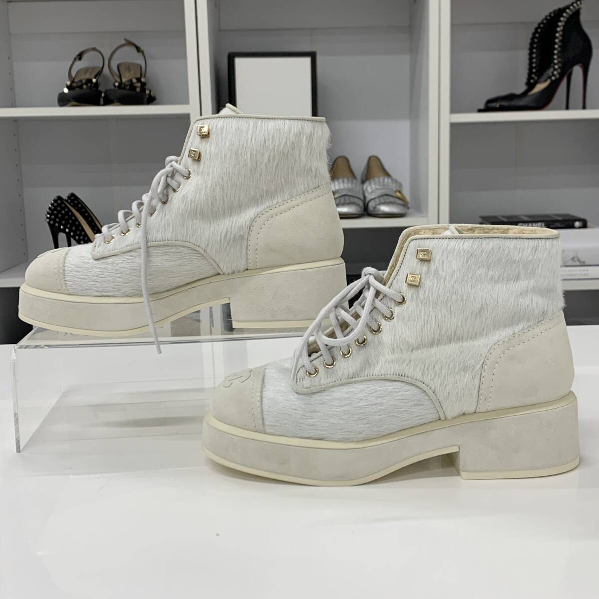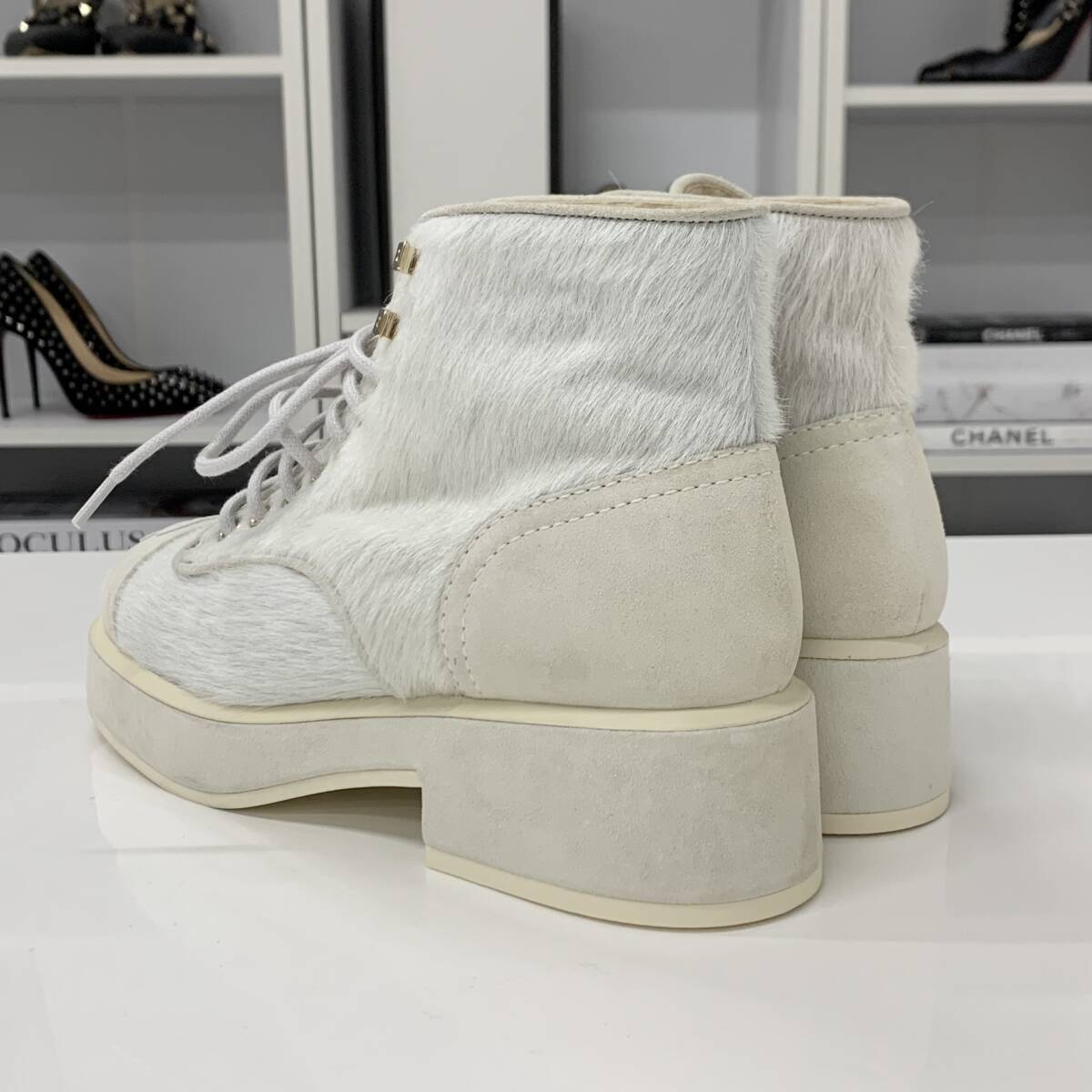 シャネル ココマーク ハラコ スエード ムートン レースアップ ショートブーツ ベージュ