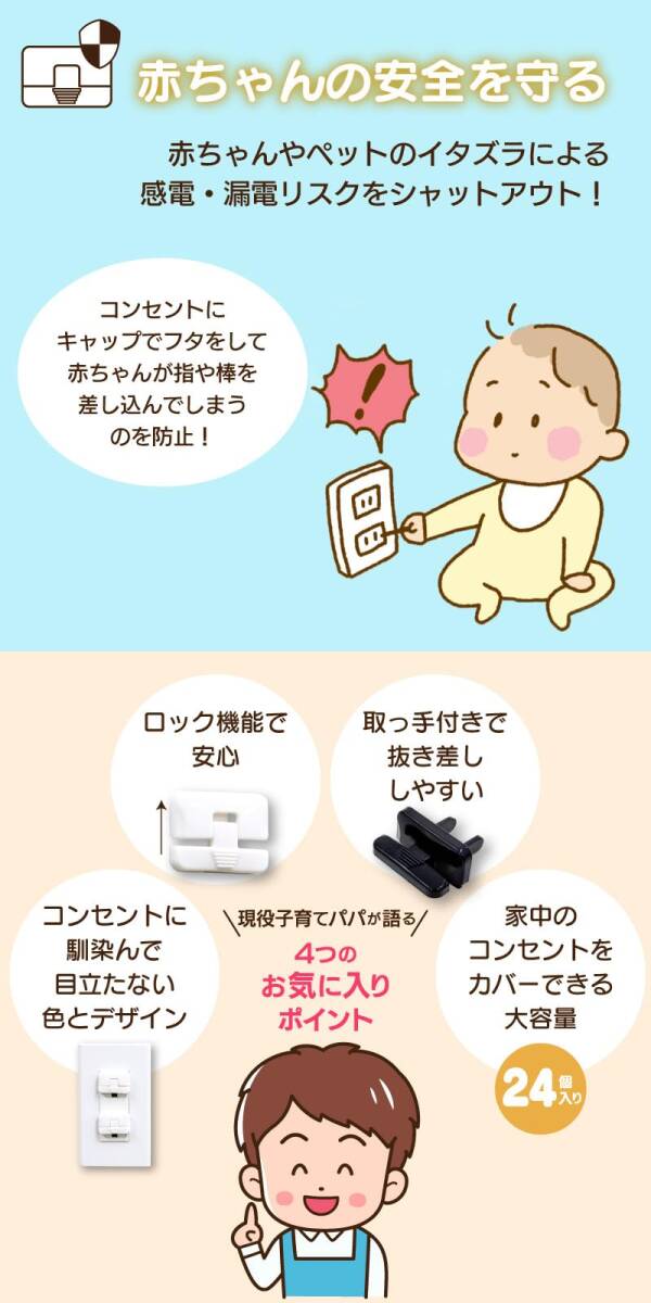 感電や漏電のリスクから赤ちゃんやペットを守ります